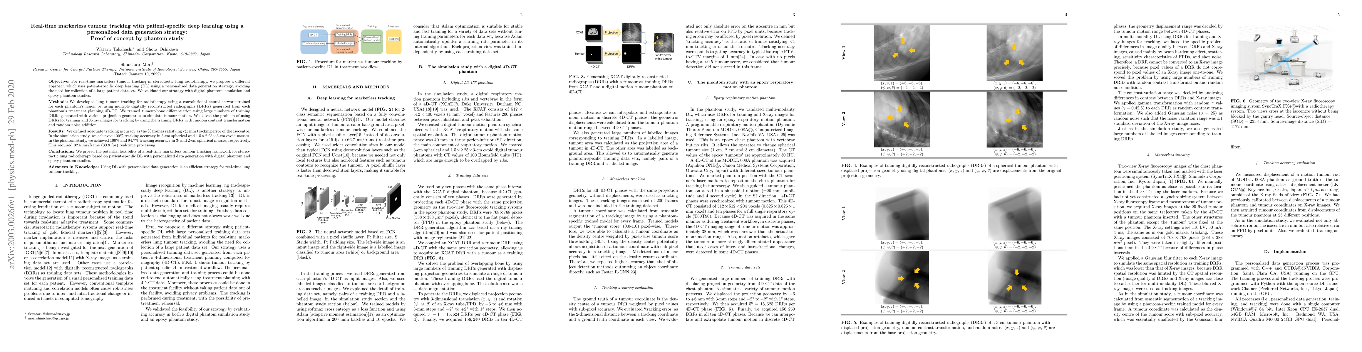 This study proposes a patient-specific deep learning approach for real-time markerless tumour tracking in stereotactic lung radiotherapy, validated through digital and epoxy phantom studies, achieving 100% accuracy in simulations and 94.7% in phantoms, demonstrating the potential of personalized data generation for effective tumour tracking.