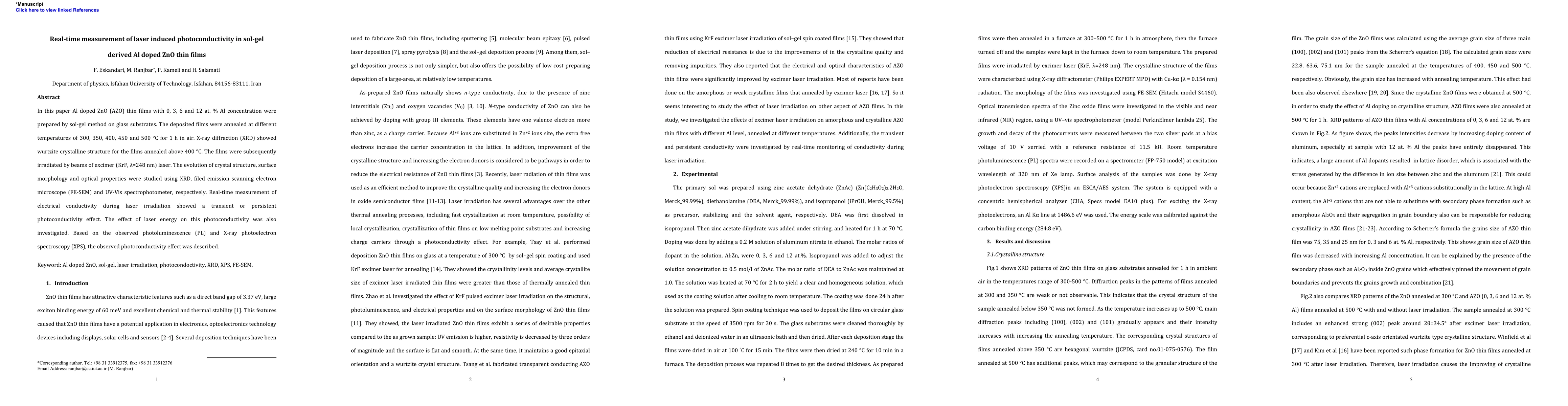 This study investigates Al-doped ZnO thin films prepared via sol-gel method, revealing transient or persistent photoconductivity under excimer laser irradiation, with effects dependent on Al concentration and annealing temperature. The photoconductivity mechanism was explained through photoluminescence and XPS analysis.