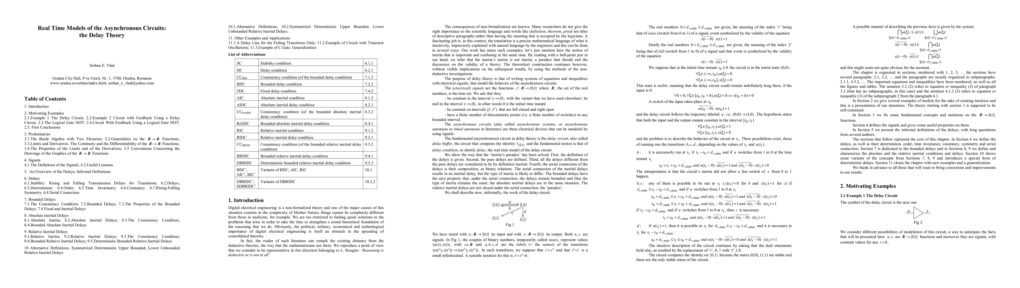 The chapter from the book introduces the delay theory, whose purpose is the modeling of the asynchronous circuits from digital electrical engineering with ordinary and differential pseudo-boolean equations.