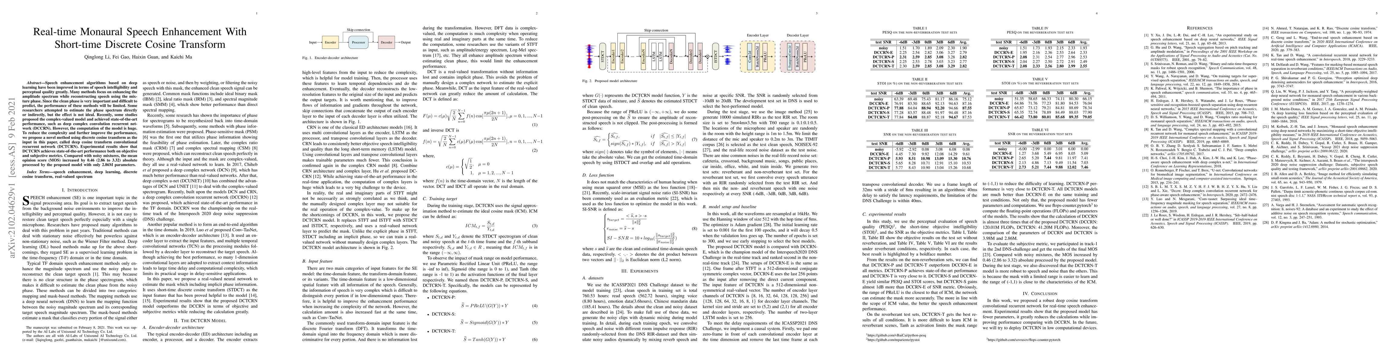 The paper introduces Deep Cosine Transform Convolutional Recurrent Network (DCTCRN) for real-time monaural speech enhancement. DCTCRN uses discrete cosine transform as input, reducing computational complexity while achieving state-of-the-art performance in speech intelligibility and perceptual quality, with a mean opinion score (MOS) improvement of 0.46 compared to noisy mixtures, using only 2.86M parameters.