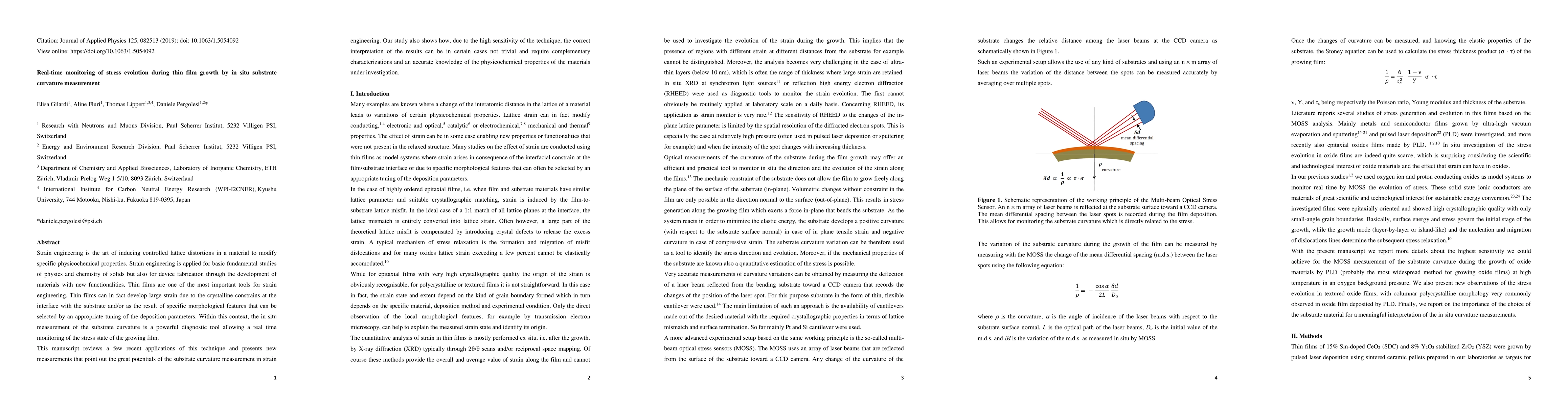 Strain engineering is the art of inducing controlled lattice distortions in a material to modify specific physicochemical properties. Strain engineering is applied for basic fundamental studies of physics and chemistry of solids but also for device fabrication through the development of materials with new functionalities. Thin films are one of the most important tools for strain engineering. Thin films can in fact develop large strain due to the crystalline constrains at the interface with the substrate and/or as the result of specific morphological features that can be selected by an appropriate tuning of the deposition parameters. Within this context, the in situ measurement of the substrate curvature is a powerful diagnostic tool allowing a real time monitoring of the stress state of the growing film. This manuscript reviews a few recent applications of this technique and presents new measurements that point out the great potentials of the substrate curvature measurement in strain engineering. Our study also shows how, due to the high sensitivity of the technique, the correct interpretation of the results can be in certain cases not trivial and require complementary characterizations and an accurate knowledge of the physicochemical properties of the materials under investigation.