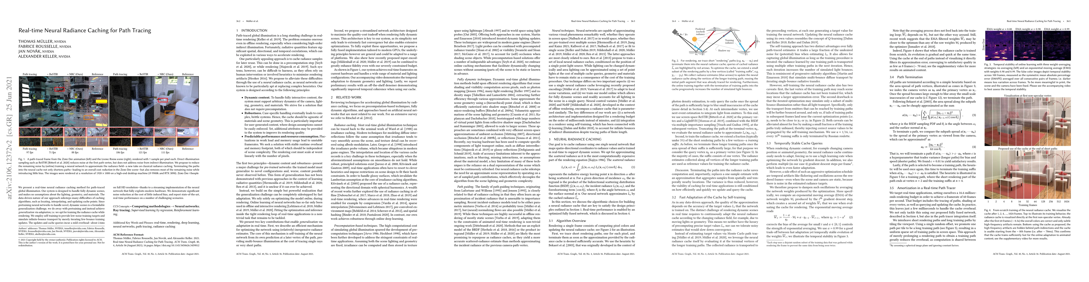 This paper introduces a real-time neural radiance caching method for path tracing that handles dynamic scenes without pretraining. It achieves generalization through adaptive training during rendering, demonstrating state-of-the-art performance with minimal noise and bias.