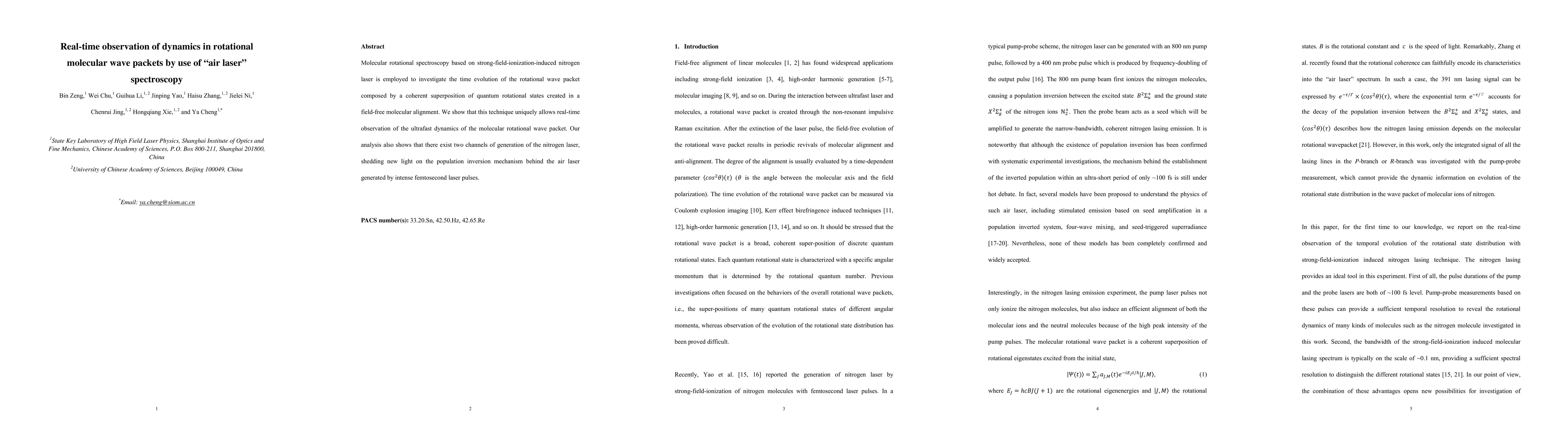This paper employs nitrogen laser-based molecular rotational spectroscopy to observe the real-time dynamics of rotational wave packets in molecules. The study reveals the ultrafast rotational state dynamics and identifies two channels in the nitrogen laser generation mechanism, providing new insights into the population inversion process in air lasers.