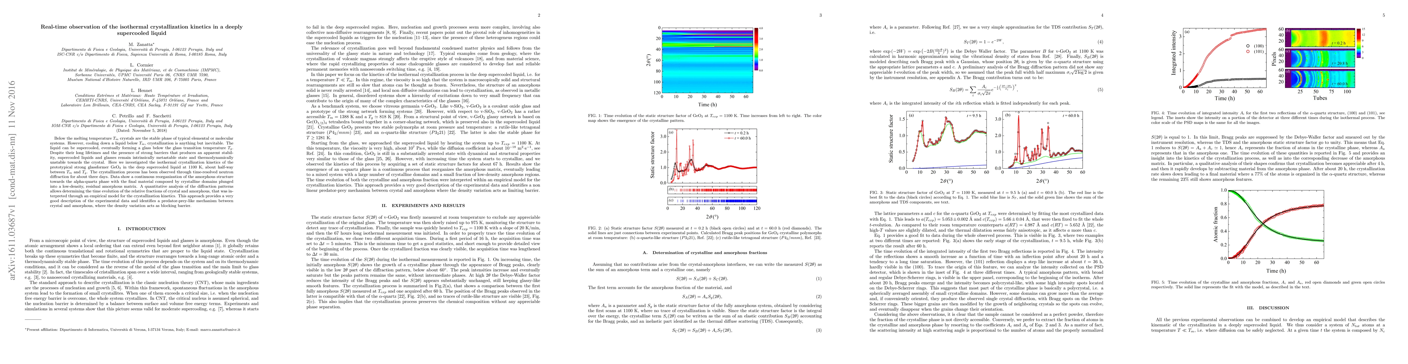 This study observes the isothermal crystallization kinetics of deeply supercooled GeO$_2$ at 1100 K using time-resolved neutron diffraction, revealing a continuous reorganization towards the alpha-quartz phase over three days. The empirical model used for analysis identifies a predator-prey mechanism with density variation acting as a blocking barrier.