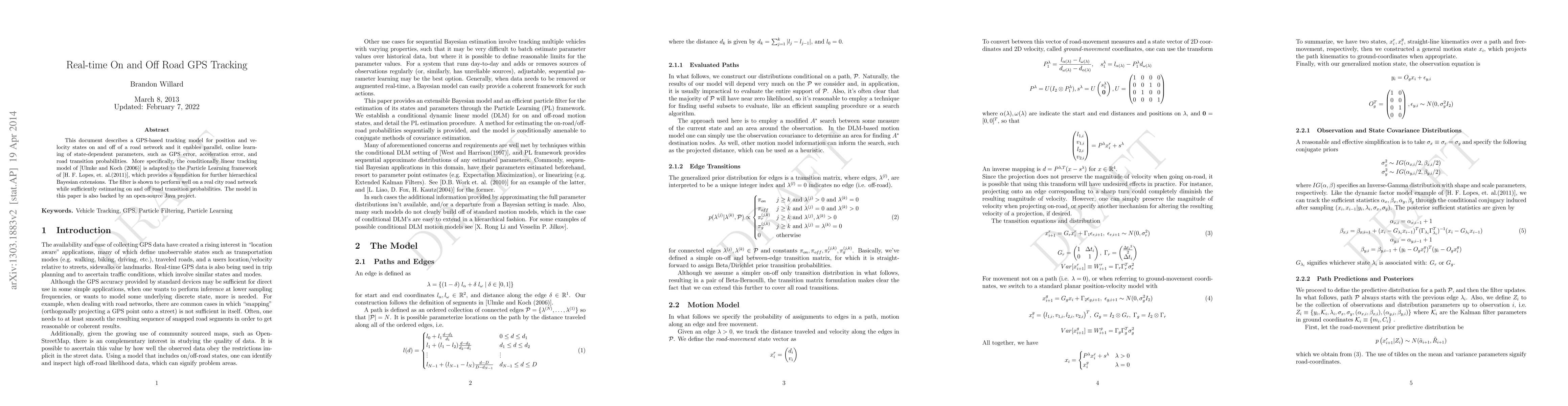This research paper proposes a GPS-based tracking model for accurate location estimation on and off road networks, using a Particle Learning framework and achieving promising results in real-world testing.