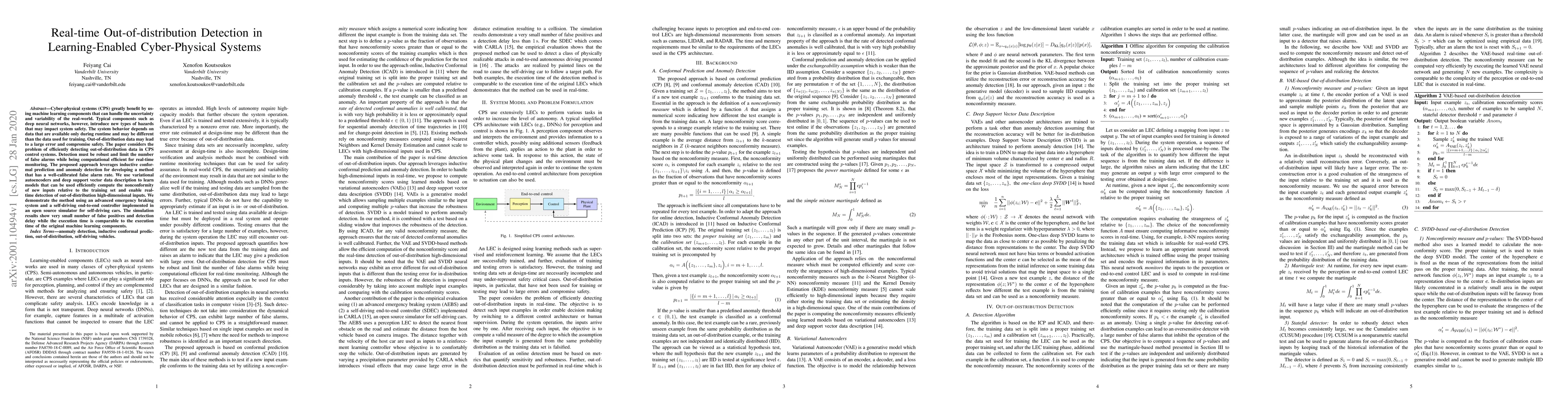This paper proposes a method for real-time detection of out-of-distribution data in cyber-physical systems using inductive conformal prediction and anomaly detection. The approach leverages variational autoencoders and deep support vector data description to efficiently compute nonconformity, enabling safe and timely monitoring with minimal false alarms.
