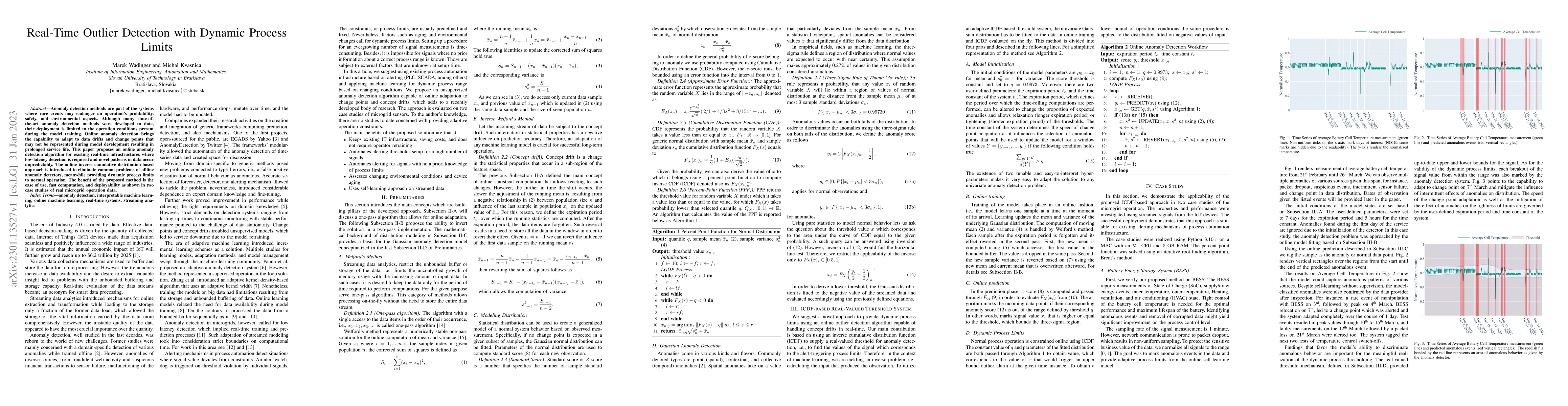 This paper proposes an online anomaly detection algorithm that adapts to data drifts and change points, offering dynamic process limits for real-time infrastructures requiring low-latency detection. The method uses an inverse cumulative distribution approach, demonstrating ease of use, fast computation, and effectiveness in real microgrid operation data.