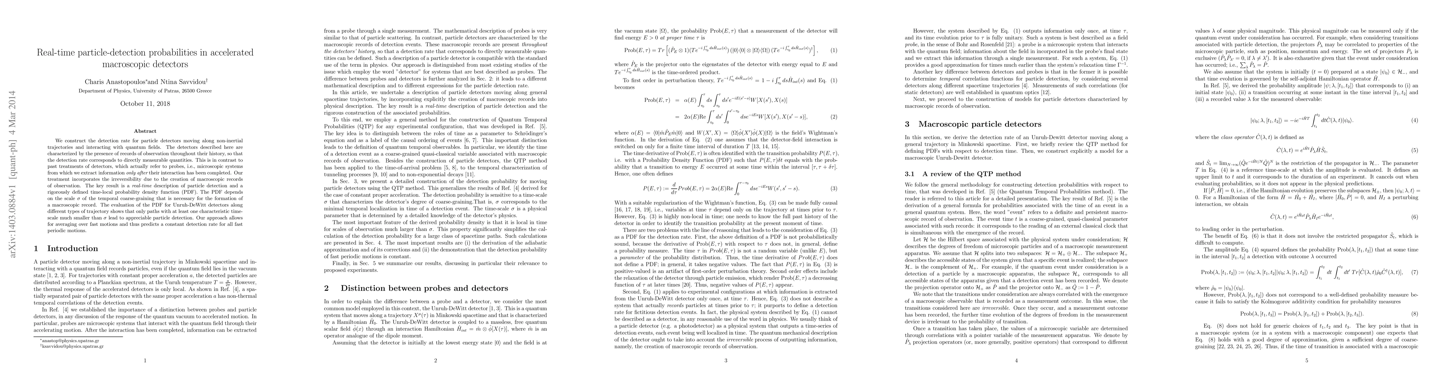 We construct the detection rate for particle detectors moving along non-inertial trajectories and interacting with quantum fields. The detectors described here are characterized by the presence of records of observation throughout their history, so that the detection rate corresponds to directly measurable quantities. This is in contrast to past treatments of detectors, which actually refer to probes, i.e., microscopic systems from which we extract information only after their interaction has been completed. Our treatment incorporates the irreversibility due to the creation of macroscopic records of observation. The key result is a real-time description of particle detection and a rigorously defined time-local probability density function (PDF). The PDF depends on the scale $\sigma$ of the temporal coarse-graining that is necessary for the formation of a macroscopic record. The evaluation of the PDF for Unruh-DeWitt detectors along different types of trajectory shows that only paths with at least one characteristic time-scale much smaller than $\sigma$ lead to appreciable particle detection. Our approach allows for averaging over fast motions and thus predicts a constant detection rate for all fast periodic motions.