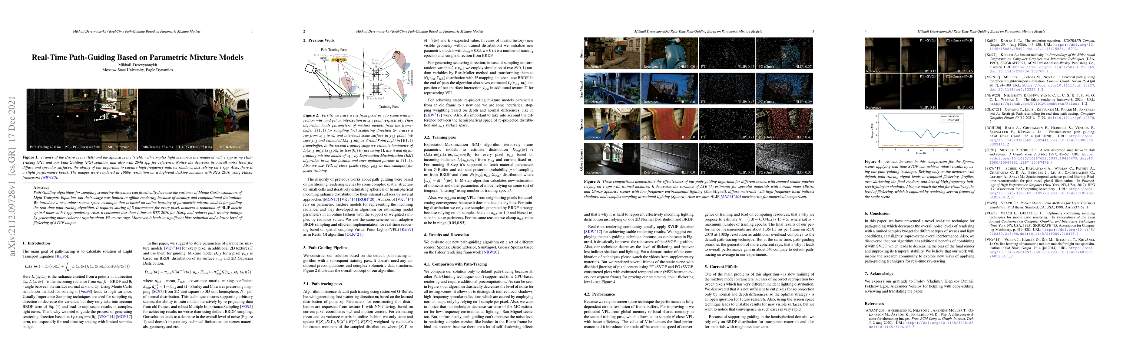 This paper presents a real-time path-guiding technique using parametric mixture models to reduce variance in Monte Carlo estimators for light transport, achieving up to 4x reduction in FLIP metric with 1 spp rendering, and lowering path-tracing times by about 5% on average while minimizing memory and computational overhead.