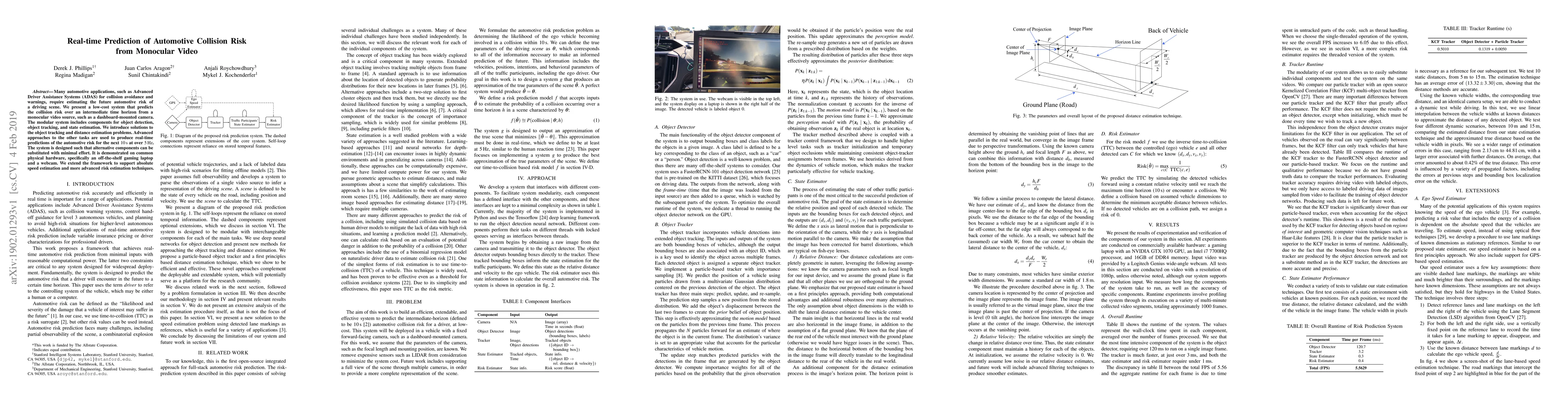 This paper presents a low-cost, real-time system for predicting automotive collision risk from monocular video, utilizing object detection, tracking, and state estimation. The system achieves high prediction frequency and is modular, allowing easy substitution of components.