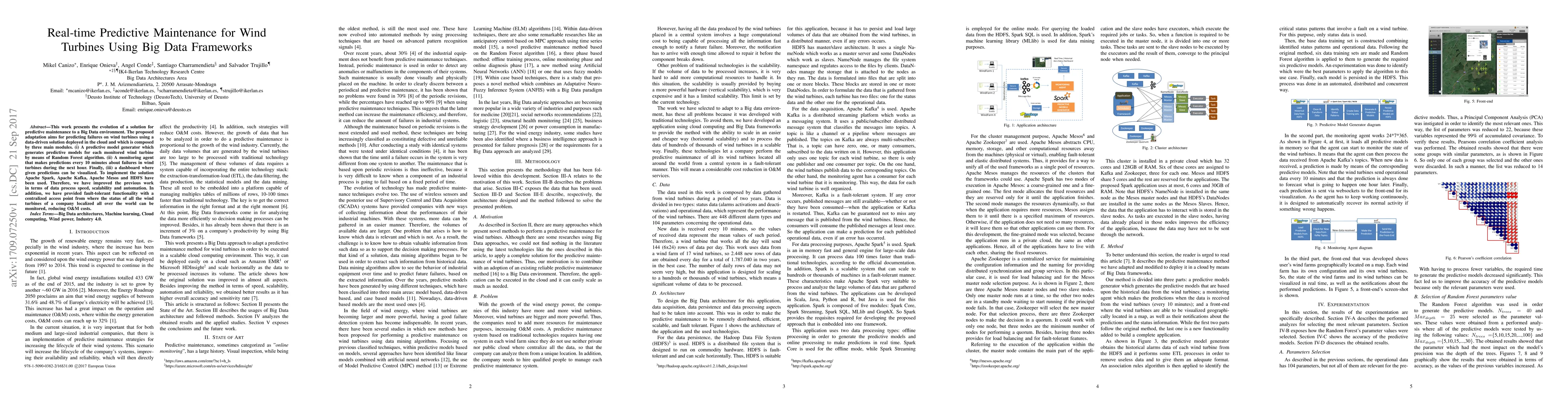 Researchers developed a Big Data-based predictive maintenance system for wind turbines, using Apache Spark, Kafka, Mesos, and HDFS, to predict failures in real-time and reduce O&M costs.