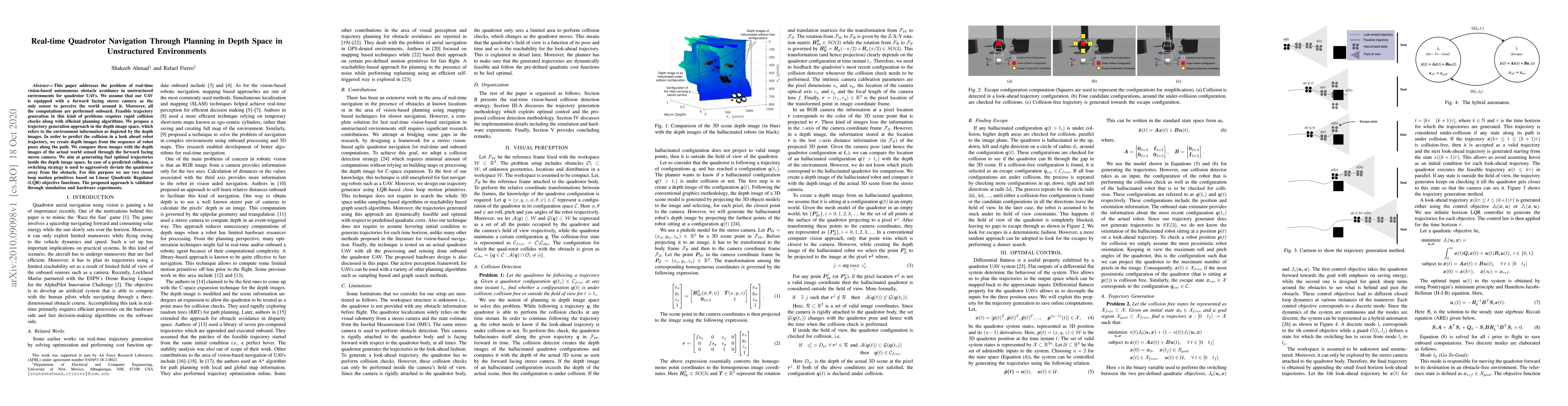 This paper proposes a real-time navigation system for quadrotor UAVs in unstructured environments, using depth images to predict collisions and generate fuel-optimal trajectories. The approach is validated through simulation and hardware experiments, enabling safe obstacle avoidance.