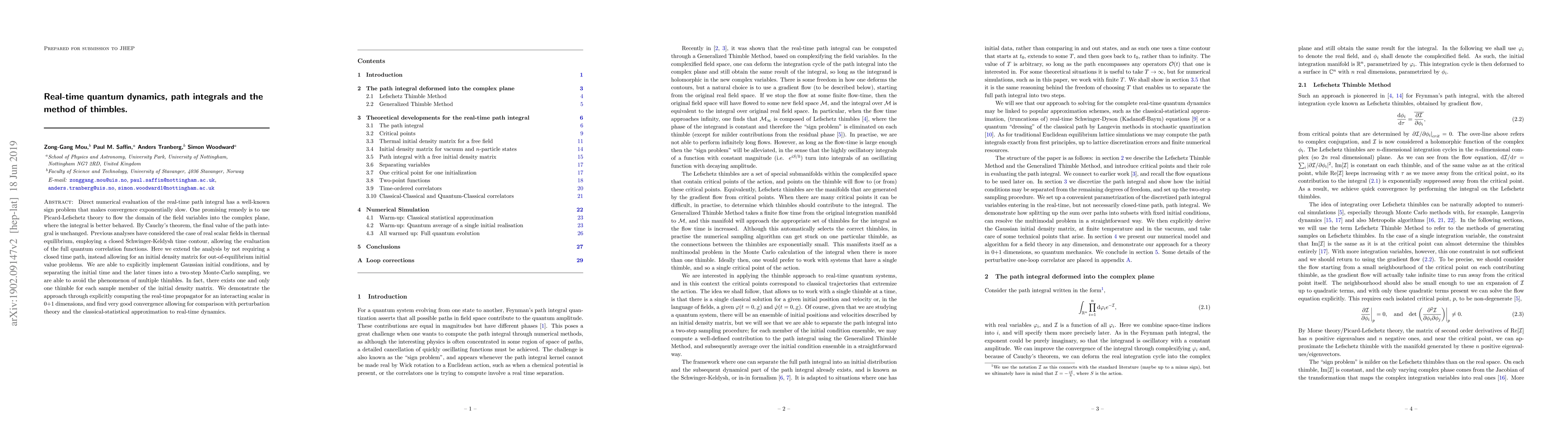 Direct numerical evaluation of the real-time path integral has a well-known sign problem that makes convergence exponentially slow. One promising remedy is to use Picard-Lefschetz theory to flow the domain of the field variables into the complex plane, where the integral is better behaved. By Cauchy's theorem, the final value of the path integral is unchanged. Previous analyses have considered the case of real scalar fields in thermal equilibrium, employing a closed Schwinger-Keldysh time contour, allowing the evaluation of the full quantum correlation functions. Here we extend the analysis by not requiring a closed time path, instead allowing for an initial density matrix for out-of-equilibrium initial value problems. We are able to explicitly implement Gaussian initial conditions, and by separating the initial time and the later times into a two-step Monte-Carlo sampling, we are able to avoid the phenomenon of multiple thimbles. In fact, there exists one and only one thimble for each sample member of the initial density matrix. We demonstrate the approach through explicitly computing the real-time propagator for an interacting scalar in 0+1 dimensions, and find very good convergence allowing for comparison with perturbation theory and the classical-statistical approximation to real-time dynamics.