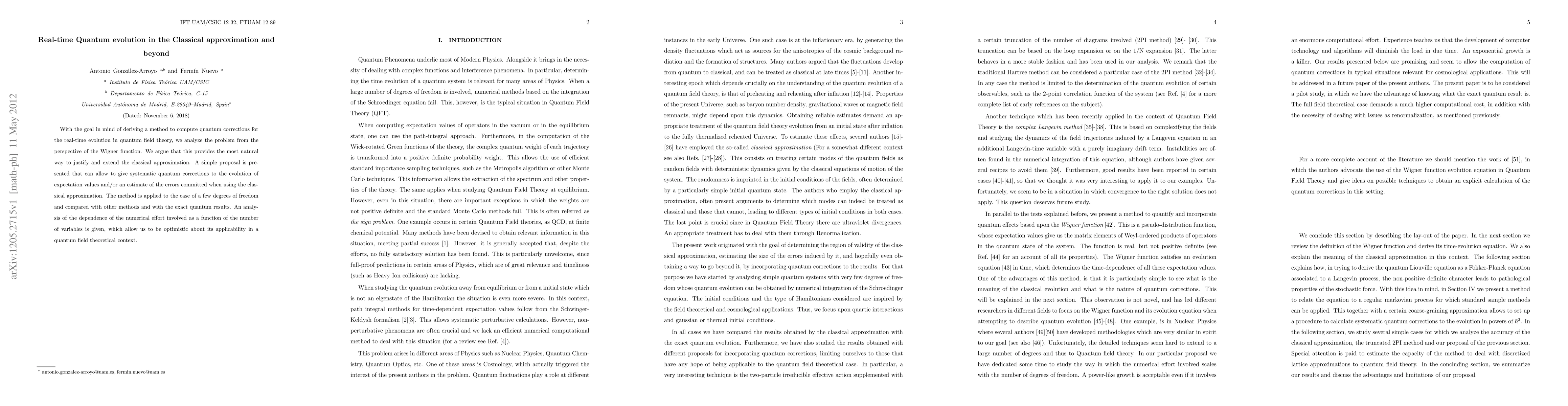 With the goal in mind of deriving a method to compute quantum corrections for the real-time evolution in quantum field theory, we analyze the problem from the perspective of the Wigner function. We argue that this provides the most natural way to justify and extend the classical approximation. A simple proposal is presented that can allow to give systematic quantum corrections to the evolution of expectation values and/or an estimate of the errors committed when using the classical approximation. The method is applied to the case of a few degrees of freedom and compared with other methods and with the exact quantum results. An analysis of the dependence of the numerical effort involved as a function of the number of variables is given, which allow us to be optimistic about its applicability in a quantum field theoretical context.