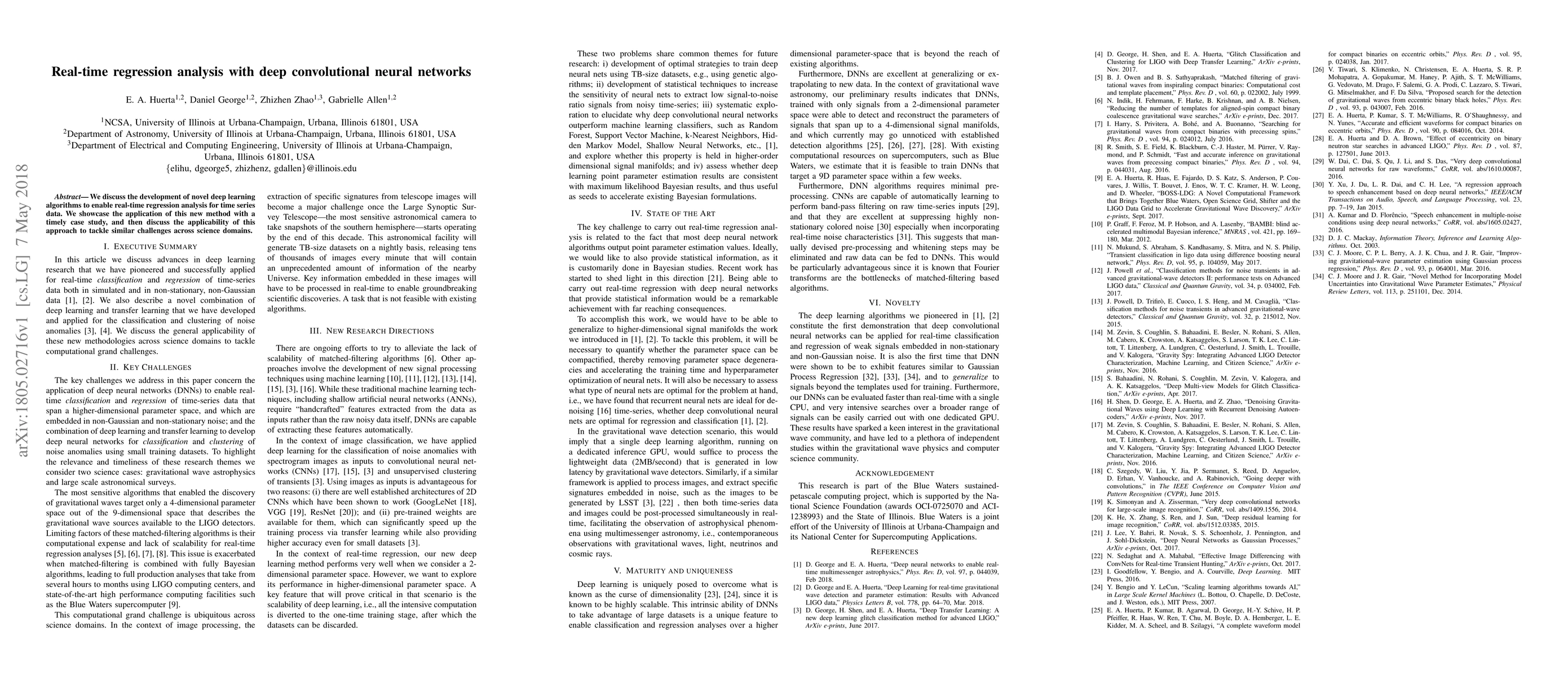 We discuss the development of novel deep learning algorithms to enable real-time regression analysis for time series data. We showcase the application of this new method with a timely case study, and then discuss the applicability of this approach to tackle similar challenges across science domains.