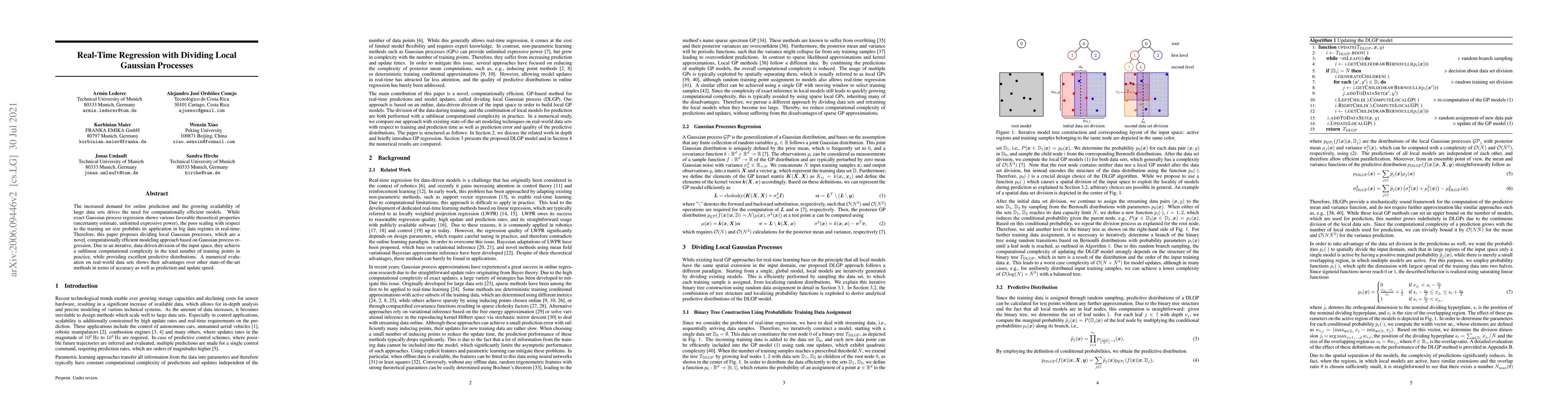 This paper introduces dividing local Gaussian processes, a novel, computationally efficient method for real-time regression that scales sublinearly with large training sets. It achieves this through iterative, data-driven division of the input space, demonstrating superior accuracy and faster prediction and update speeds compared to other state-of-the-art methods.