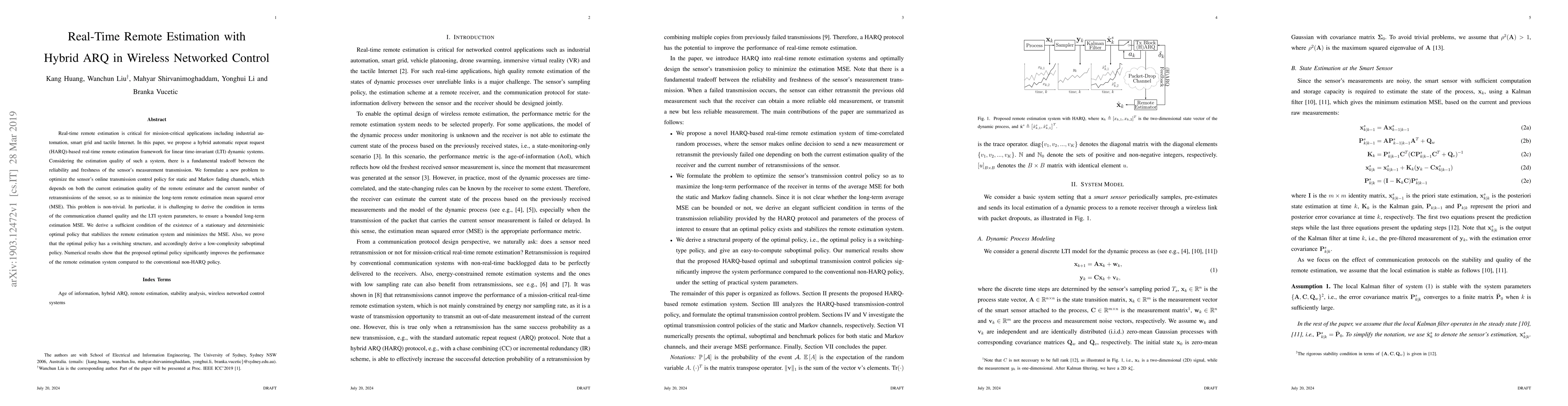 Real-time remote estimation is critical for mission-critical applications including industrial automation, smart grid and tactile Internet. In this paper, we propose a hybrid automatic repeat request (HARQ)-based real-time remote estimation framework for linear time-invariant (LTI) dynamic systems. Considering the estimation quality of such a system, there is a fundamental tradeoff between the reliability and freshness of the sensor's measurement transmission. We formulate a new problem to optimize the sensor's online transmission control policy for static and Markov fading channels, which depends on both the current estimation quality of the remote estimator and the current number of retransmissions of the sensor, so as to minimize the long-term remote estimation mean squared error (MSE). This problem is non-trivial. In particular, it is challenging to derive the condition in terms of the communication channel quality and the LTI system parameters, to ensure a bounded long-term estimation MSE. We derive an elegant sufficient condition of the existence of a stationary and deterministic optimal policy that stabilizes the remote estimation system and minimizes the MSE. Also, we prove that the optimal policy has a switching structure, and accordingly derive a low-complexity suboptimal policy. Numerical results show that the proposed optimal policy significantly improves the performance of the remote estimation system compared to the conventional non-HARQ policy.