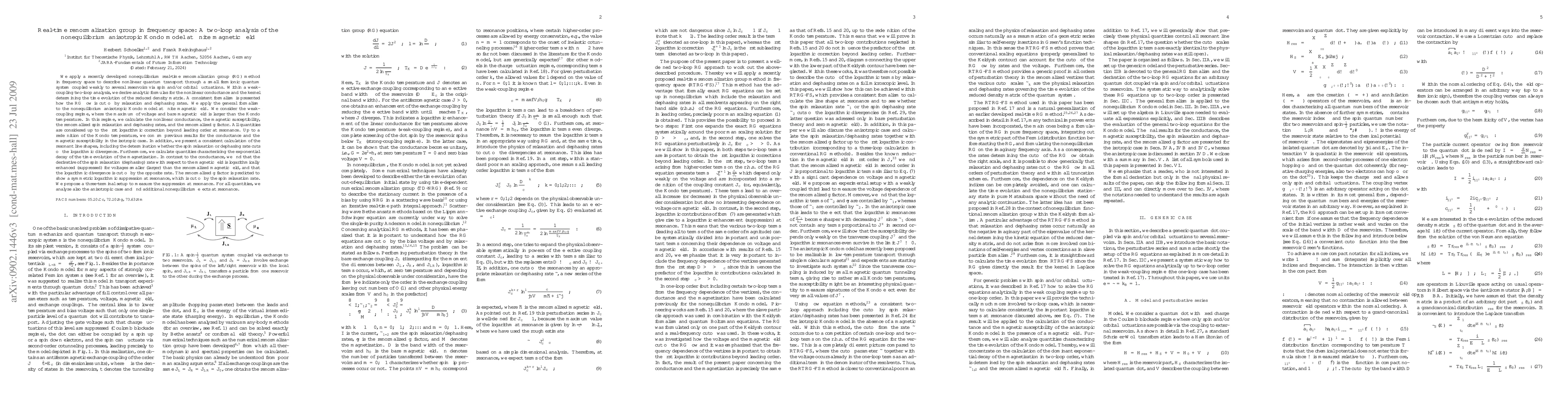 We apply a recently developed nonequilibrium real-time renormalization group method in frequency space to describe nonlinear quantum transport through a small fermionic quantum system coupled weakly to several reservoirs via spin and/or orbital fluctuations. We provide an analytic and well-controlled procedure to solve the RG equations in the weak-coupling regime. Within a 2-loop analysis, we derive analytic formulas for the nonlinear conductance and the kernel determining the time evolution of the reduced density matrix. Most importantly, we present a consistent formalism how the RG flow is cut off by relaxation and dephasing rates, which is necessary to calculate the precise line shape at resonances. We apply the general formalism to the nonequilibrium anisotropic Kondo model at finite magnetic field. We consider the weak-coupling regime, where the maximum of voltage and bare magnetic field is larger than the Kondo-temperature. In this regime, we calculate the nonlinear conductance, the magnetic susceptibility, the renormalized spin relaxation and dephasing rates, and the renormalized g-factor. All quantities are considered up to the first logarithmic contributions at resonance. Up to a redefinition of the Kondo temperature, we confirm previous results for the conductance and the magnetic susceptibility in the isotropic case. In addition, we present a consistent calculation of the line shape at the resonances, including the determination which rate cuts off the logarithmic divergence. Furthermore, we calculate the rates and the renormalized g-factor in nonequilibrium beyond leading order, being quantities characterizing the exponential decay of the time evolution of the magnetization. For all quantities we analyse also the anisotropic case and find interesting nonequilibrium effects at resonance.