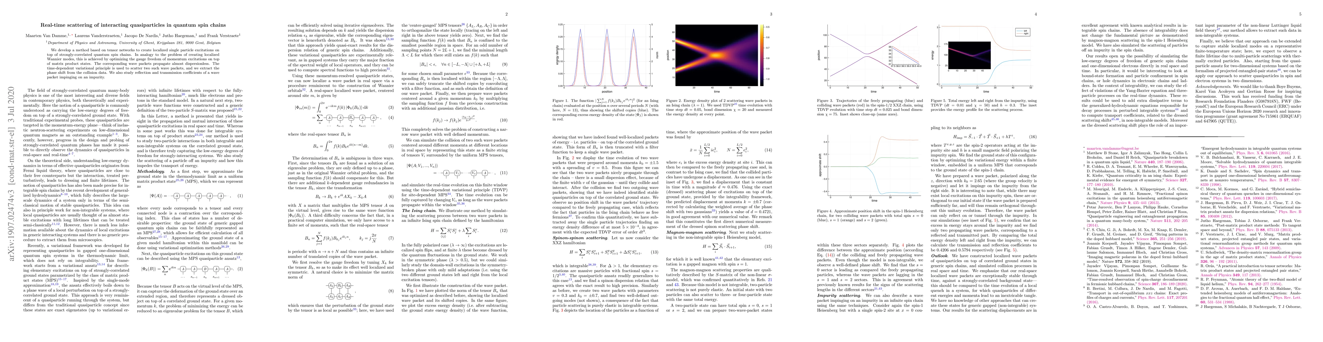 Researchers developed a method to create localized single particle excitations on top of strongly-correlated quantum spin chains using tensor networks, allowing them to study the scattering of these excitations in real-time.