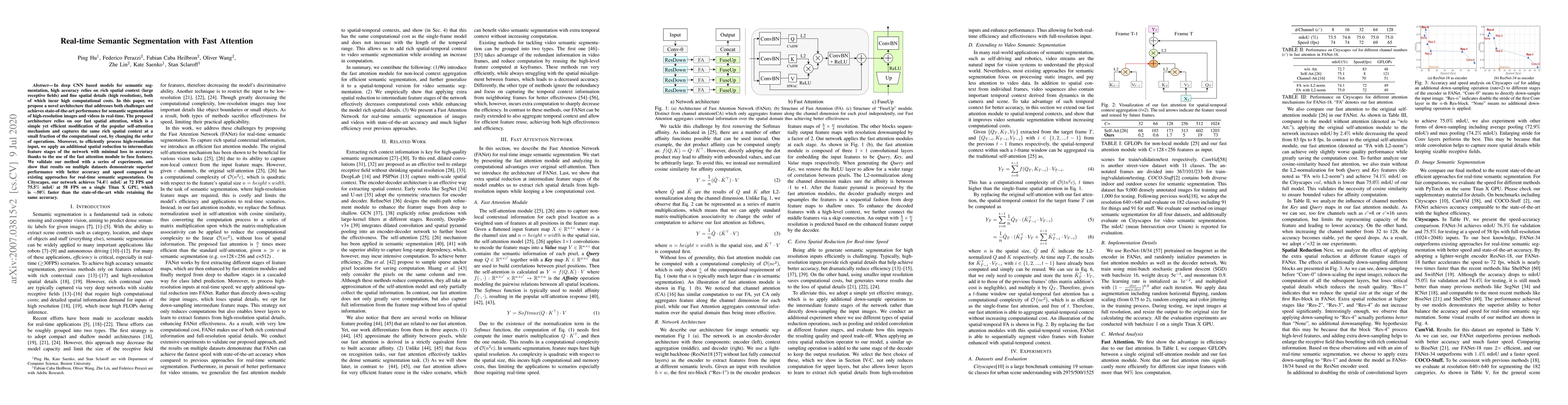 This paper proposes a novel architecture for real-time semantic segmentation using fast spatial attention to achieve high accuracy and speed. The method efficiently processes high-resolution inputs with minimal accuracy loss, achieving state-of-the-art performance on datasets like Cityscapes.