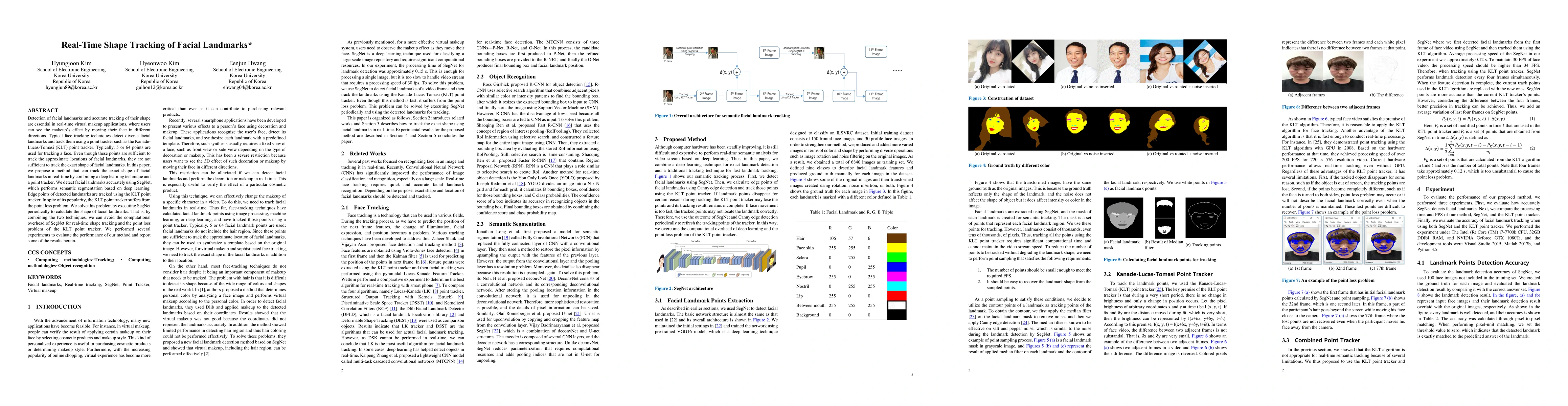 This paper proposes a method for real-time tracking of the exact shape of facial landmarks using a combination of deep learning and the Kanade-Lucas-Tomasi (KLT) point tracker, addressing the point loss issue of KLT by periodically applying SegNet for shape calculation. Experiments demonstrate the effectiveness of the proposed approach.