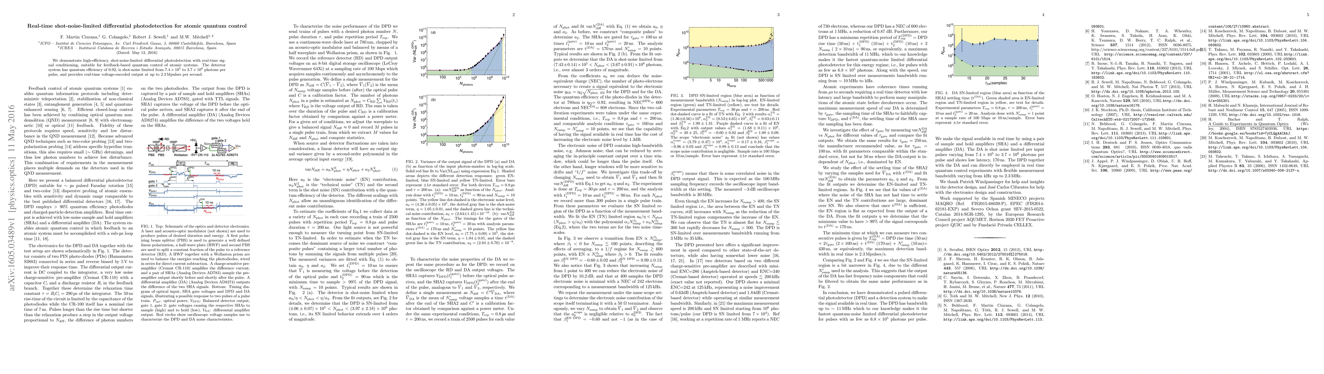 Researchers developed a high-efficiency photodetection system that enables real-time feedback for quantum control of atomic systems, with a quantum efficiency of 0.92 and shot-noise limited up to 2.3 megapulses per second.