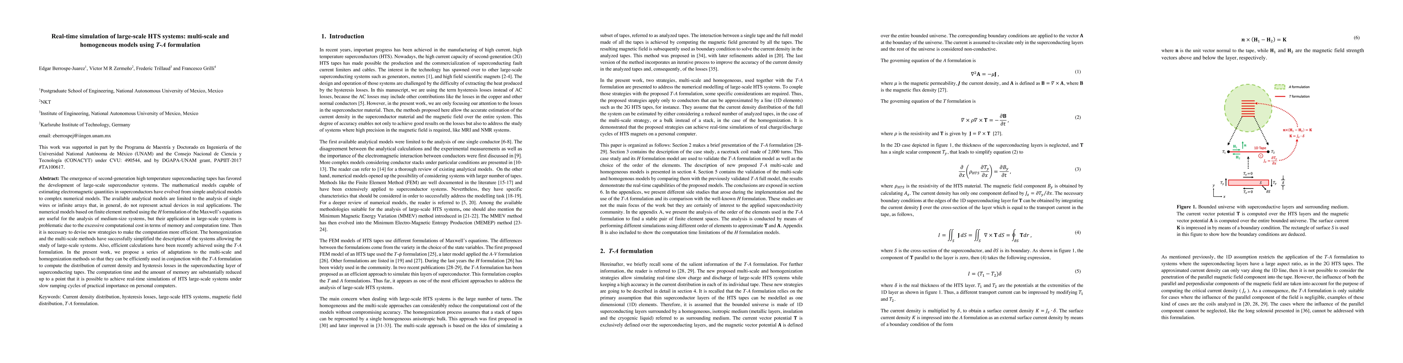This paper proposes adaptations of multi-scale and homogenization methods combined with the T-A formulation for efficient computation of current density and hysteresis losses in large-scale high-temperature superconducting systems, enabling real-time simulations on personal computers. The approach significantly reduces computational cost, addressing the limitations of existing numerical models.
