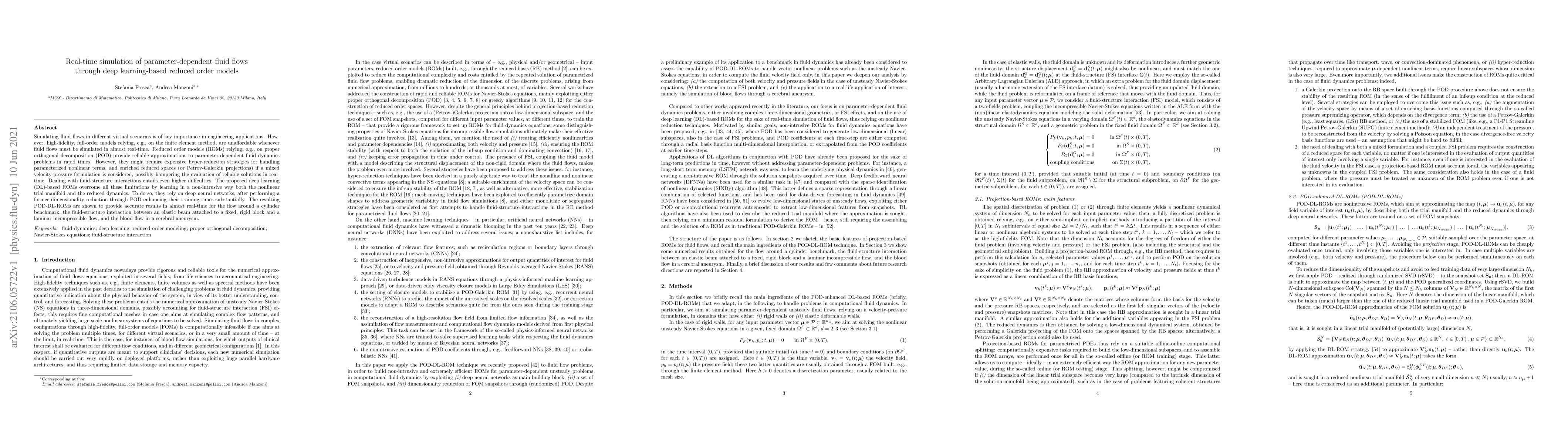 Simulating fluid flows in different virtual scenarios is of key importance in engineering applications. However, high-fidelity, full-order models relying, e.g., on the finite element method, are unaffordable whenever fluid flows must be simulated in almost real-time. Reduced order models (ROMs) relying, e.g., on proper orthogonal decomposition (POD) provide reliable approximations to parameter-dependent fluid dynamics problems in rapid times. However, they might require expensive hyper-reduction strategies for handling parameterized nonlinear terms, and enriched reduced spaces (or Petrov-Galerkin projections) if a mixed velocity-pressure formulation is considered, possibly hampering the evaluation of reliable solutions in real-time. Dealing with fluid-structure interactions entails even higher difficulties. The proposed deep learning (DL)-based ROMs overcome all these limitations by learning in a non-intrusive way both the nonlinear trial manifold and the reduced dynamics. To do so, they rely on deep neural networks, after performing a former dimensionality reduction through POD enhancing their training times substantially. The resulting POD-DL-ROMs are shown to provide accurate results in almost real-time for the flow around a cylinder benchmark, the fluid-structure interaction between an elastic beam attached to a fixed, rigid block and a laminar incompressible flow, and the blood flow in a cerebral aneurysm.
