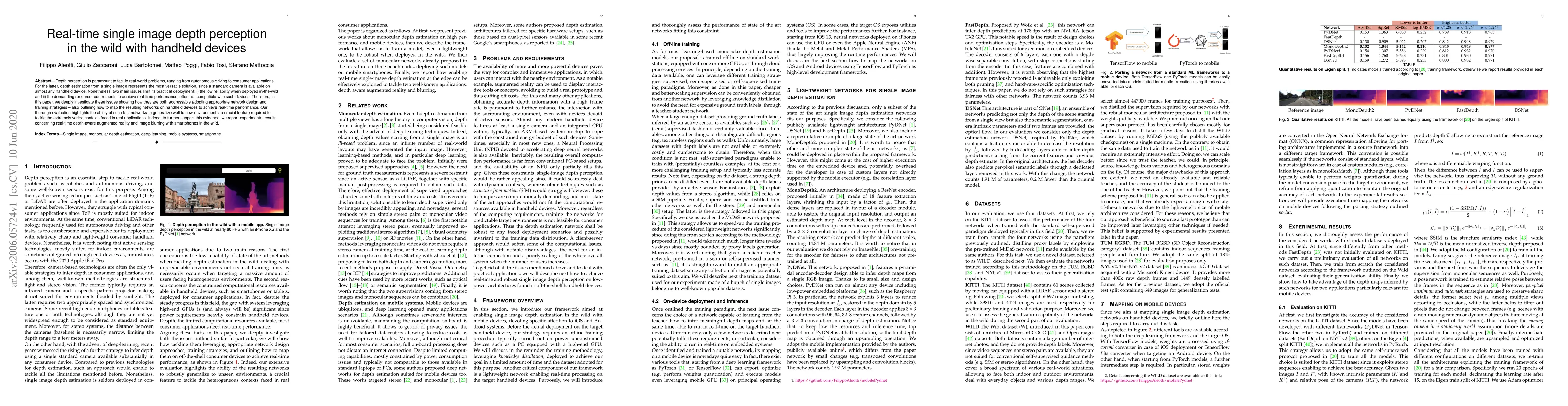 Depth perception is paramount to tackle real-world problems, ranging from autonomous driving to consumer applications. For the latter, depth estimation from a single image represents the most versatile solution, since a standard camera is available on almost any handheld device. Nonetheless, two main issues limit its practical deployment: i) the low reliability when deployed in-the-wild and ii) the demanding resource requirements to achieve real-time performance, often not compatible with such devices. Therefore, in this paper, we deeply investigate these issues showing how they are both addressable adopting appropriate network design and training strategies -- also outlining how to map the resulting networks on handheld devices to achieve real-time performance. Our thorough evaluation highlights the ability of such fast networks to generalize well to new environments, a crucial feature required to tackle the extremely varied contexts faced in real applications. Indeed, to further support this evidence, we report experimental results concerning real-time depth-aware augmented reality and image blurring with smartphones in-the-wild.