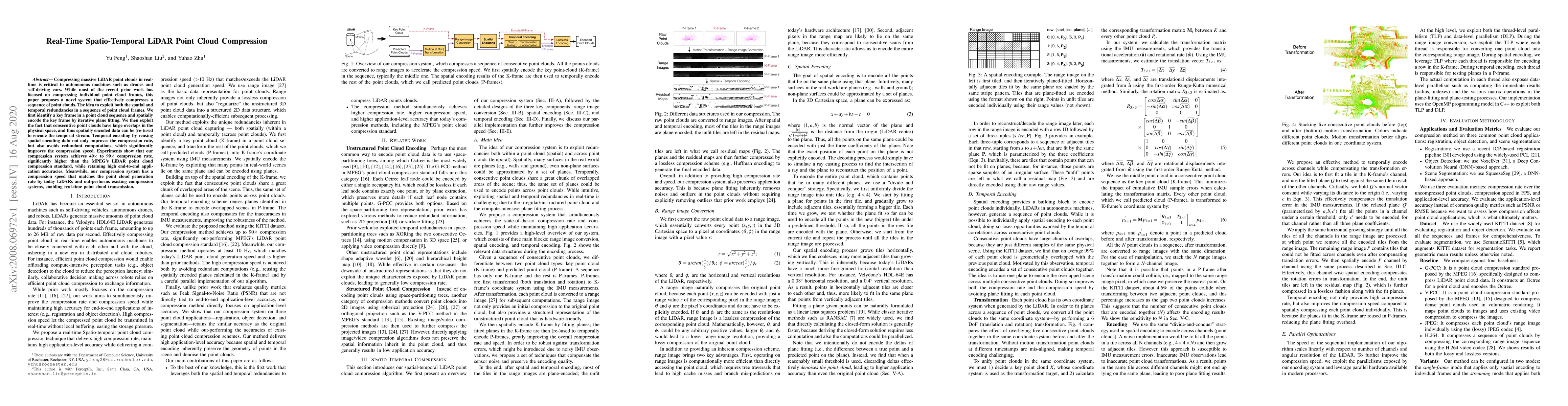This paper proposes a novel system for real-time compression of LiDAR point cloud sequences by exploiting spatial and temporal redundancies, achieving 40x to 90x compression rates with high accuracy and matching the point cloud generation rate for real-time transmission.