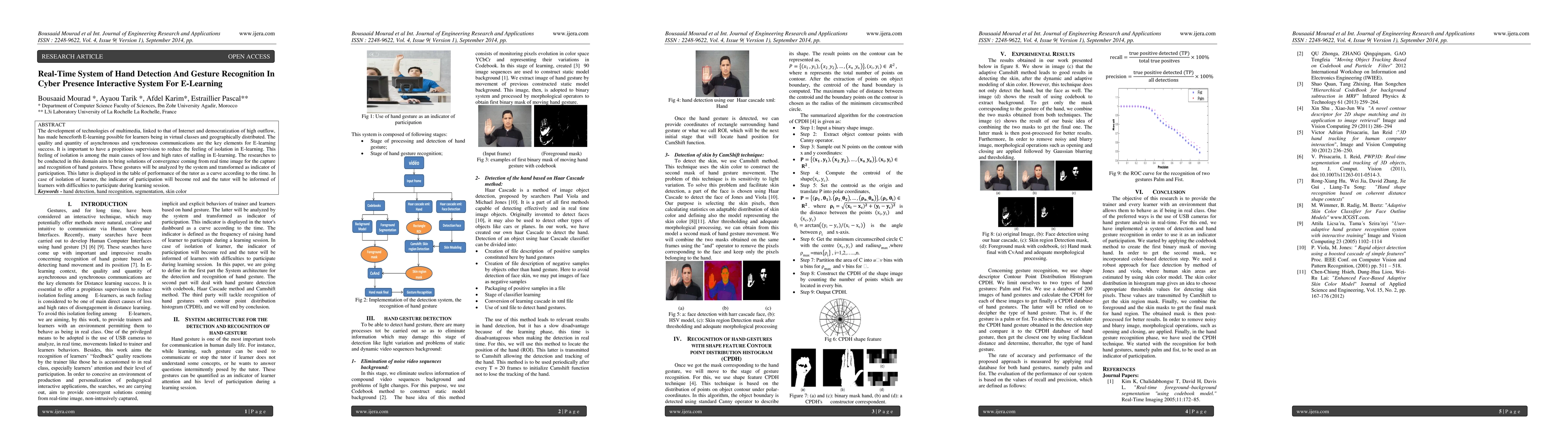 The development of technologies of multimedia, linked to that of Internet and democratization of high outflow, has made henceforth E-learning possible for learners being in virtual classes and geographically distributed. The quality and quantity of asynchronous and synchronous communications are the key elements for E-learning success. It is important to have a propitious supervision to reduce the feeling of isolation in E-learning. This feeling of isolation is among the main causes of loss and high rates of stalling in E-learning. The researches to be conducted in this domain aim to bring solutions of convergence coming from real time image for the capture and recognition of hand gestures. These gestures will be analyzed by the system and transformed as indicator of participation. This latter is displayed in the table of performance of the tutor as a curve according to the time. In case of isolation of learner, the indicator of participation will become red and the tutor will be informed of learners with difficulties to participate during learning session.