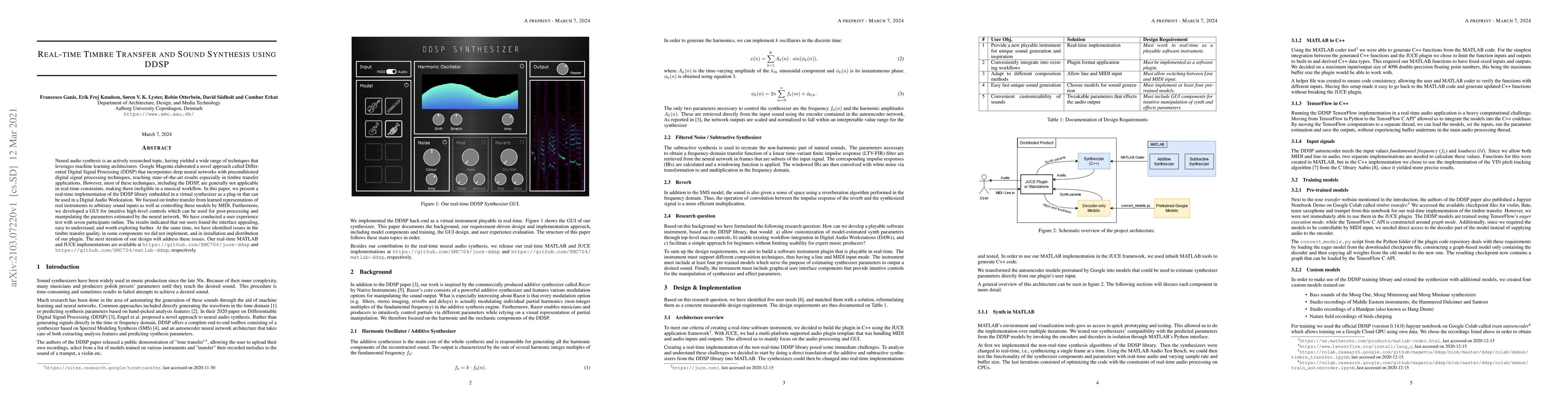 This paper presents a real-time implementation of the Differential Digital Signal Processing (DDSP) library within a virtual synthesizer plug-in for Digital Audio Workstations, focusing on timbre transfer and MIDI control. User experience tests showed positive feedback on the interface, but highlighted areas for improvement in timbre quality and plugin distribution.