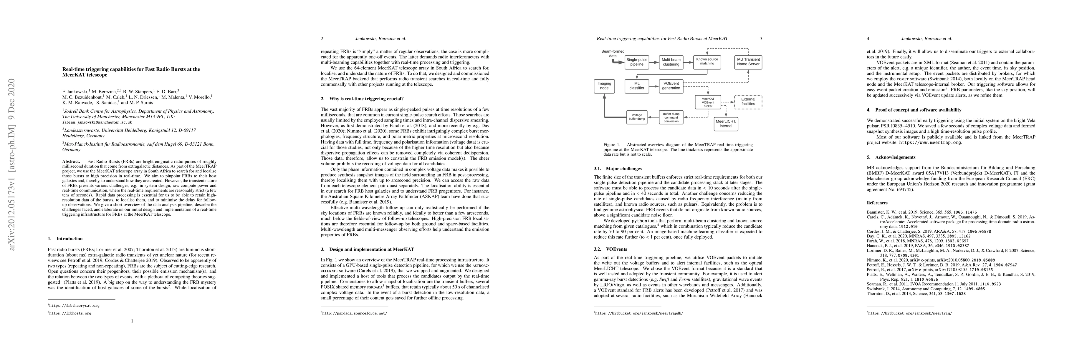 Fast Radio Bursts (FRBs) are bright enigmatic radio pulses of roughly millisecond duration that come from extragalactic distances. As part of the MeerTRAP project, we use the MeerKAT telescope array in South Africa to search for and localise those bursts to high precision in real-time. We aim to pinpoint FRBs to their host galaxies and, thereby, to understand how they are created. However, the transient nature of FRBs presents various challenges, e.g. in system design, raw compute power and real-time communication, where the real-time requirements are reasonably strict (a few tens of seconds). Rapid data processing is essential for us to be able to retain high-resolution data of the bursts, to localise them, and to minimise the delay for follow-up observations. We give a short overview of the data analysis pipeline, describe the challenges faced, and elaborate on our initial design and implementation of a real-time triggering infrastructure for FRBs at the MeerKAT telescope.