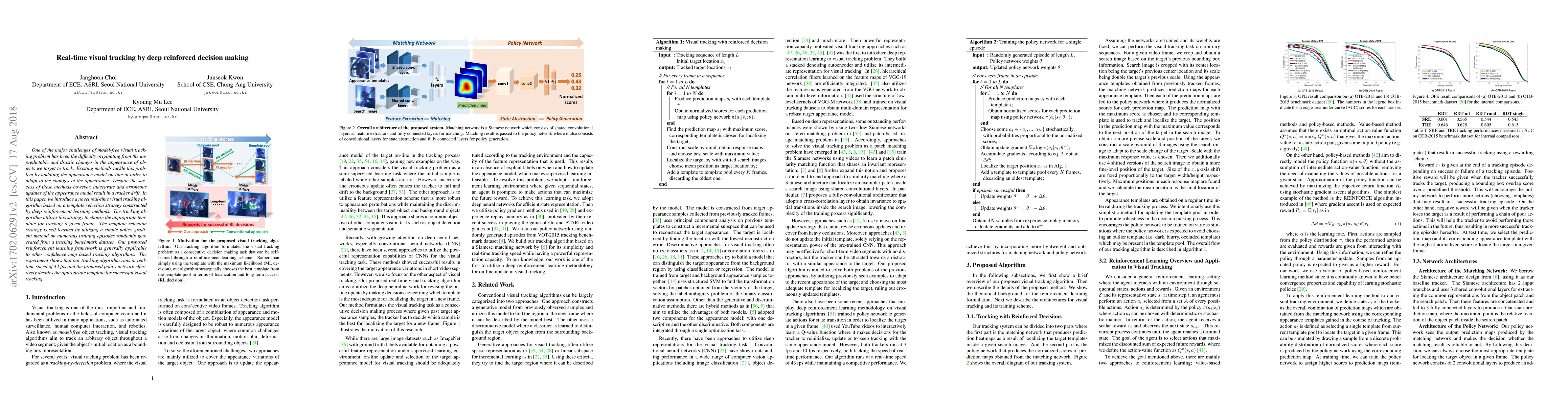 This paper proposes a real-time visual tracking algorithm using deep reinforcement learning to select the most appropriate template for tracking, addressing the issue of tracker drift caused by appearance changes. The method achieves a real-time speed of 43 fps and demonstrates successful tracking performance.