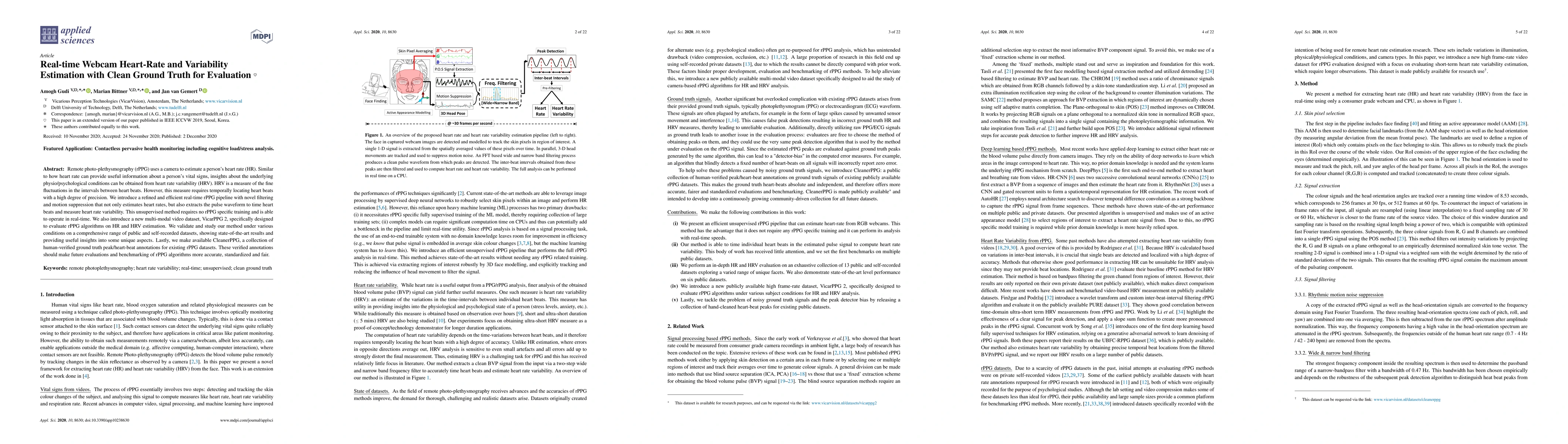 This paper presents a refined real-time remote photo-plethysmography (rPPG) pipeline for estimating heart rate and variability using webcams, featuring novel filtering and motion suppression. It introduces a new dataset, VicarPPG 2, and verified ground truth annotations to improve evaluation accuracy.