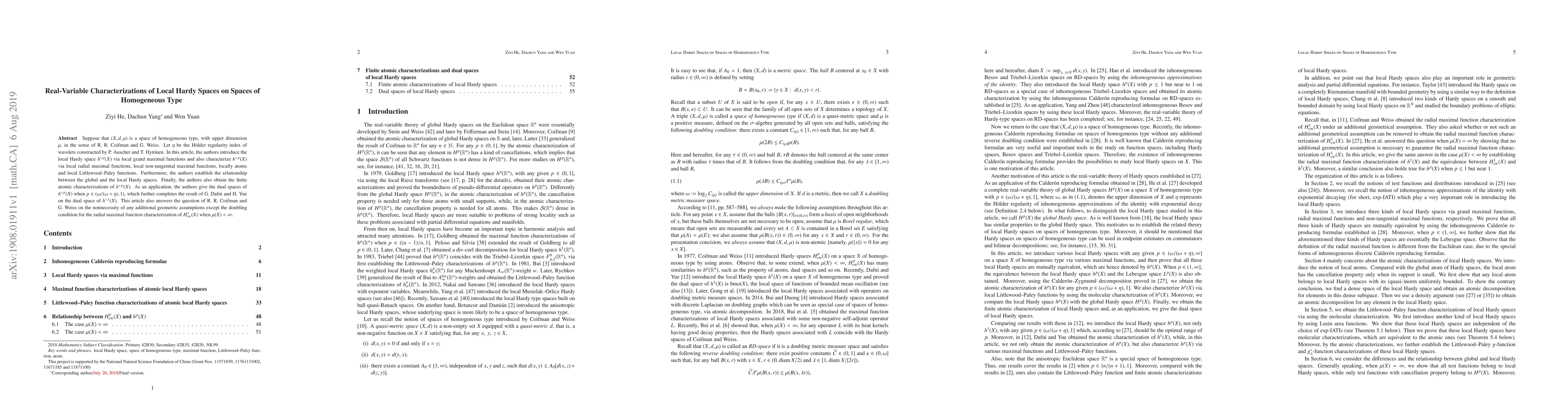 This paper explores local Hardy spaces $h^{*,p}(X)$ on spaces of homogeneous type, characterizing them via various maximal functions and atomic decompositions. It establishes connections between global and local Hardy spaces and provides dual space results, answering questions regarding the characterization of $H^1_{\mathrm{cw}}(X)$.