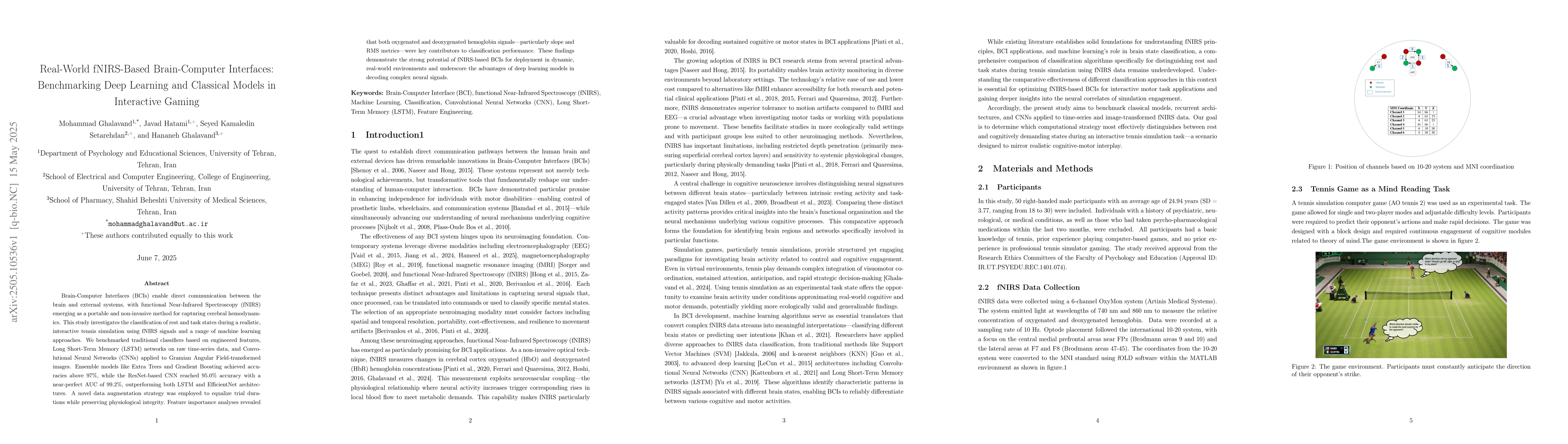 This research demonstrates the potential of fNIRS-based BCIs in dynamic, real-world environments and underscores the advantages of deep learning models in decoding complex neural signals.