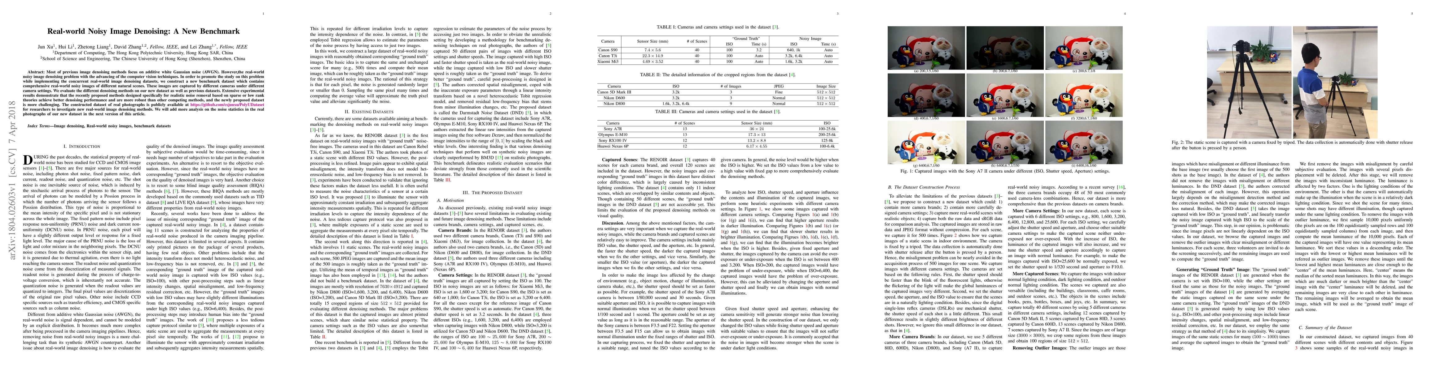 Most of previous image denoising methods focus on additive white Gaussian noise (AWGN). However,the real-world noisy image denoising problem with the advancing of the computer vision techiniques. In order to promote the study on this problem while implementing the concurrent real-world image denoising datasets, we construct a new benchmark dataset which contains comprehensive real-world noisy images of different natural scenes. These images are captured by different cameras under different camera settings. We evaluate the different denoising methods on our new dataset as well as previous datasets. Extensive experimental results demonstrate that the recently proposed methods designed specifically for realistic noise removal based on sparse or low rank theories achieve better denoising performance and are more robust than other competing methods, and the newly proposed dataset is more challenging. The constructed dataset of real photographs is publicly available at \url{https://github.com/csjunxu/PolyUDataset} for researchers to investigate new real-world image denoising methods. We will add more analysis on the noise statistics in the real photographs of our new dataset in the next version of this article.