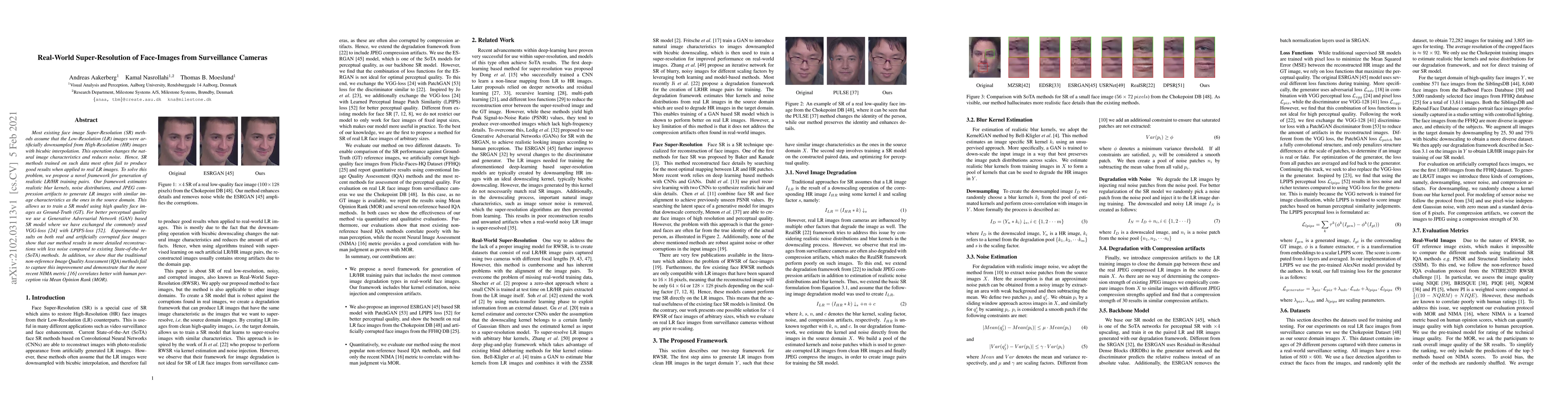 Researchers developed a new method to improve face image super-resolution from surveillance cameras by generating realistic low-resolution training pairs using blur kernels, noise distributions, and JPEG compression artifacts. The method achieved more detailed reconstructions with less noise than existing state-of-the-art methods.