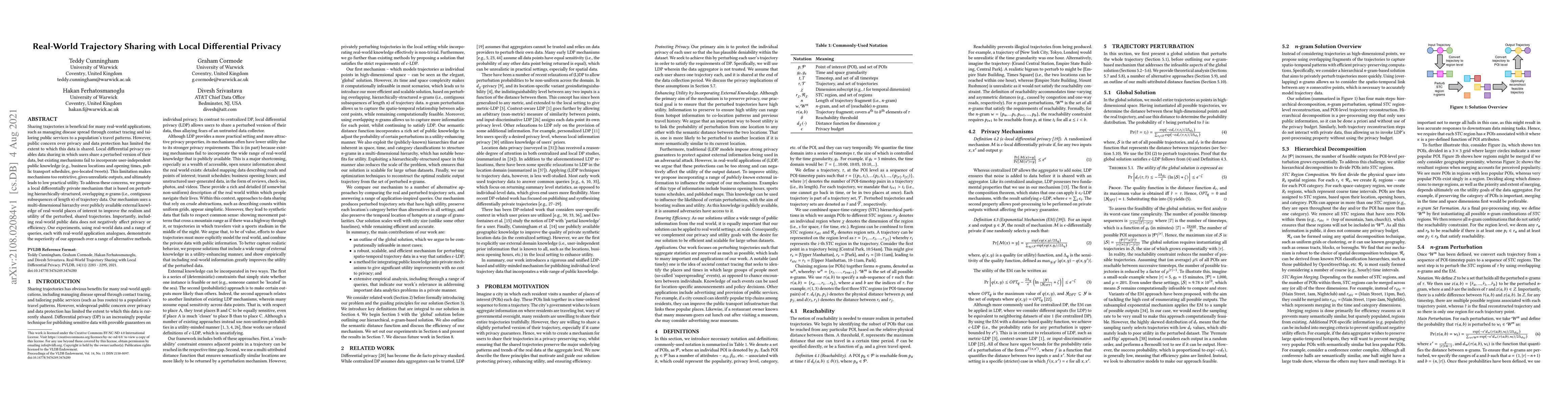 This paper proposes a local differentially private mechanism for sharing real-world trajectory data by incorporating publicly available external knowledge, such as business locations and public transport schedules, to enhance the realism and utility of the shared data. The approach maintains privacy and efficiency while significantly outperforming existing methods in practical applications.