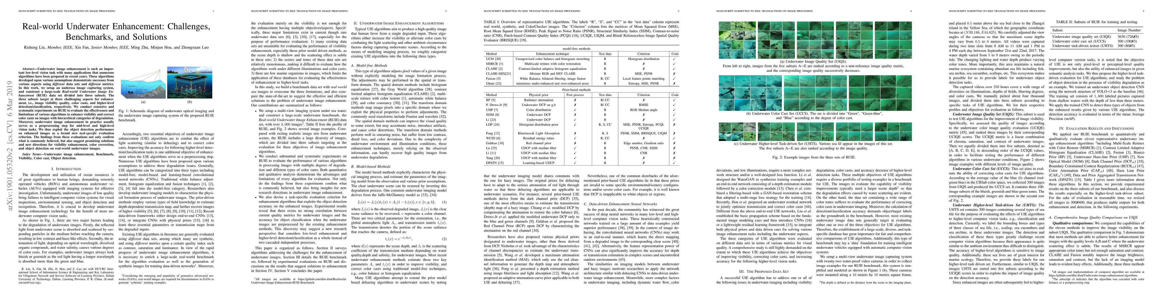 Underwater image enhancement is such an important low-level vision task with many applications that numerous algorithms have been proposed in recent years. These algorithms developed upon various assumptions demonstrate successes from various aspects using different data sets and different metrics. In this work, we setup an undersea image capturing system, and construct a large-scale Real-world Underwater Image Enhancement (RUIE) data set divided into three subsets. The three subsets target at three challenging aspects for enhancement, i.e., image visibility quality, color casts, and higher-level detection/classification, respectively. We conduct extensive and systematic experiments on RUIE to evaluate the effectiveness and limitations of various algorithms to enhance visibility and correct color casts on images with hierarchical categories of degradation. Moreover, underwater image enhancement in practice usually serves as a preprocessing step for mid-level and high-level vision tasks. We thus exploit the object detection performance on enhanced images as a brand new task-specific evaluation criterion. The findings from these evaluations not only confirm what is commonly believed, but also suggest promising solutions and new directions for visibility enhancement, color correction, and object detection on real-world underwater images.