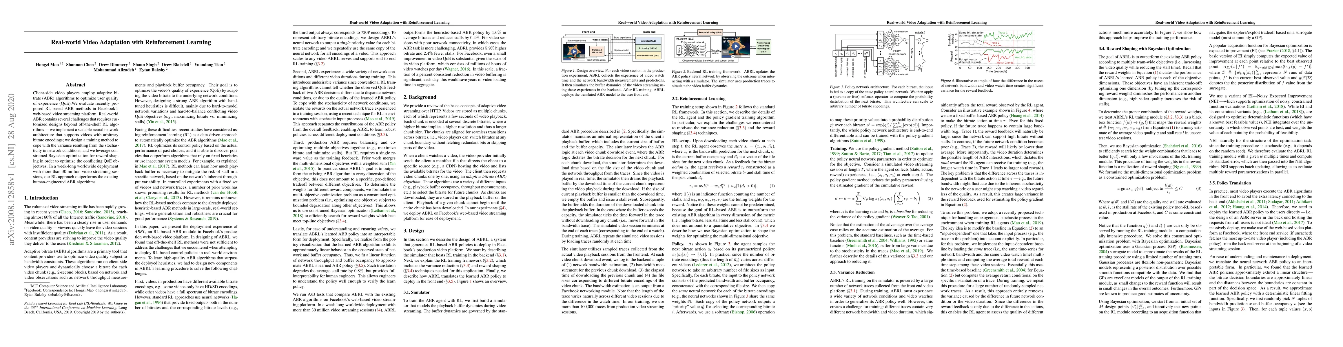A reinforcement learning-based video adaptation system was deployed in Facebook's web-based streaming platform, achieving better quality of experience for over 30 million users than existing human-engineered algorithms.