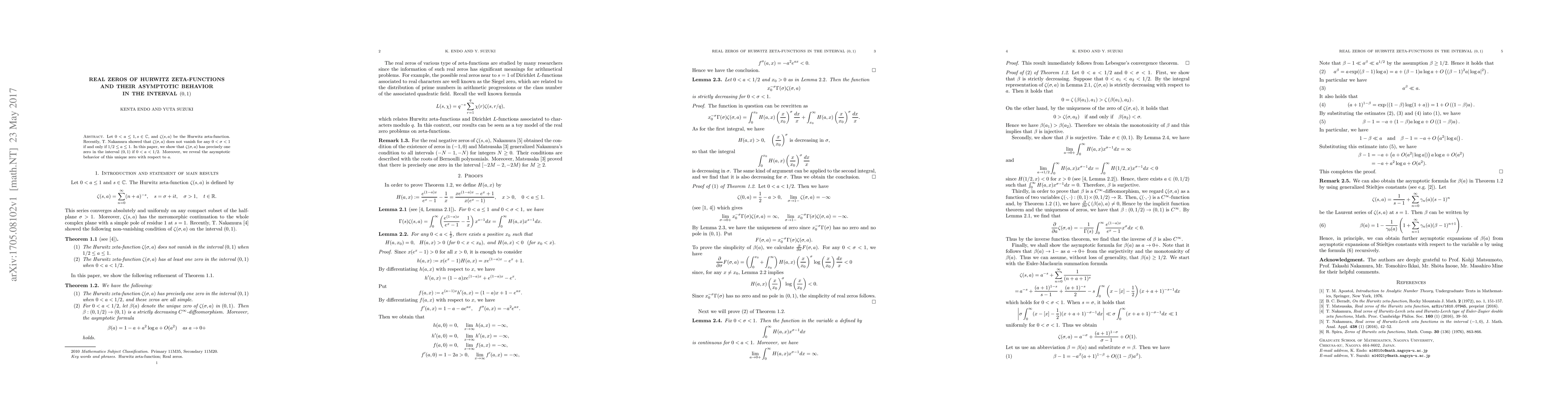 This paper investigates the real zeros of the Hurwitz zeta-function $\zeta(s,a)$ for $0<a\leq1$ and $s\in\mathbb{C}$, confirming that $\zeta(\sigma,a)$ has exactly one zero in $(0,1)$ when $0<a<1/2$. It also provides the asymptotic behavior of this zero concerning $a$.