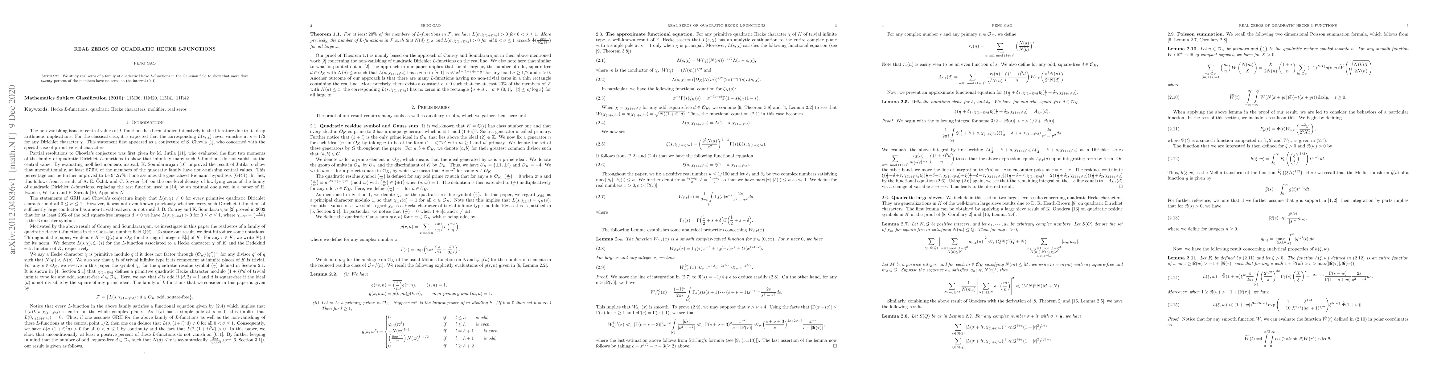This research investigates quadratic Hecke $L$-functions in the Gaussian field and demonstrates that over twenty percent of these functions possess no real zeros within the interval $(0, 1]$. The study provides insights into the distribution of zeros of these complex analytic functions.