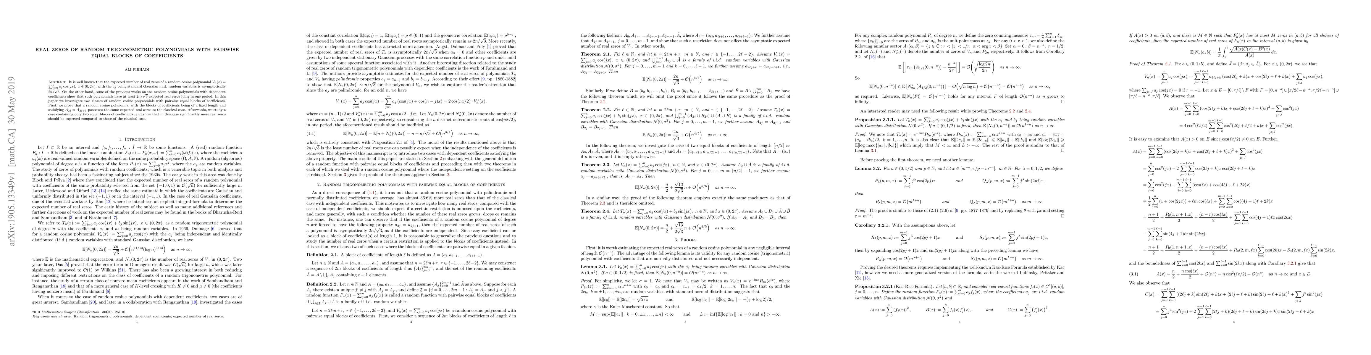 It is well known that the expected number of real zeros of a random cosine polynomial $ V_n(x) = \sum_ {j=0} ^{n} a_j \cos (j x) , \ x \in (0,2\pi) $, with the $ a_j $ being standard Gaussian i.i.d. random variables is asymptotically $ 2n / \sqrt{3} $. On the other hand, some of the previous works on the random cosine polynomials with dependent coefficients show that such polynomials have at least $ 2n / \sqrt{3} $ expected real zeros lying in one period. In this paper we investigate two classes of random cosine polynomials with pairwise equal blocks of coefficients. First, we prove that a random cosine polynomial with the blocks of coefficients being of a fixed length and satisfying $ A_{2j}=A_{2j+1} $ possesses the same expected real zeros as the classical case. Afterwards, we study a case containing only two equal blocks of coefficients, and show that in this case significantly more real zeros should be expected compared to those of the classical case.