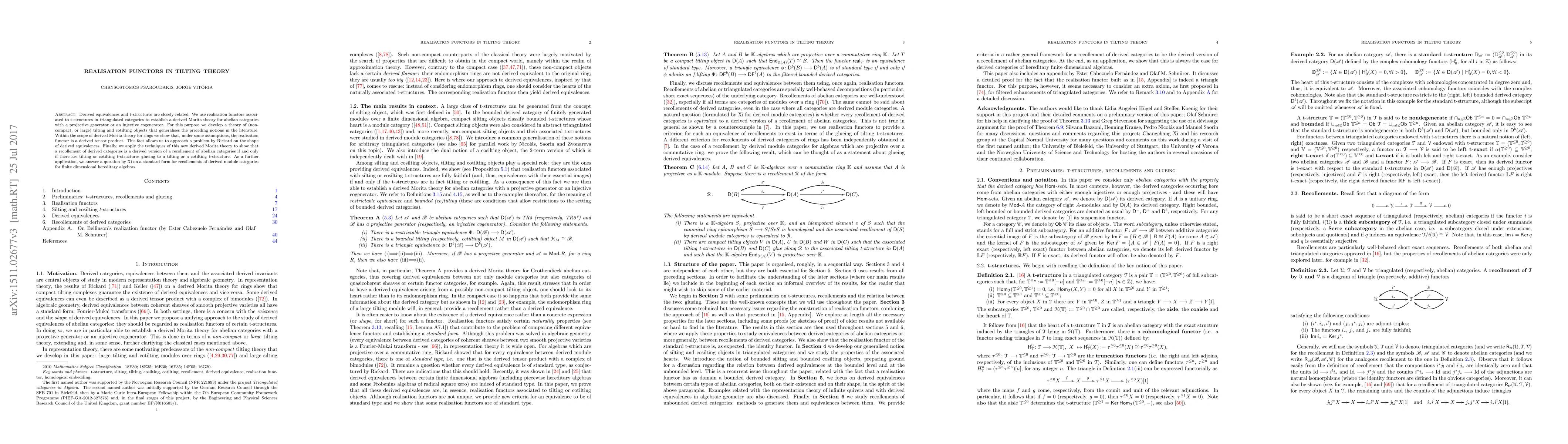 This paper develops a derived Morita theory using realisation functors tied to t-structures in triangulated categories, generalising tilting and cotilting objects. It demonstrates that under certain conditions, the realisation functor behaves as a derived tensor product, enabling insights into derived equivalences and solving problems by Rickard and Xi on recollements of derived categories.