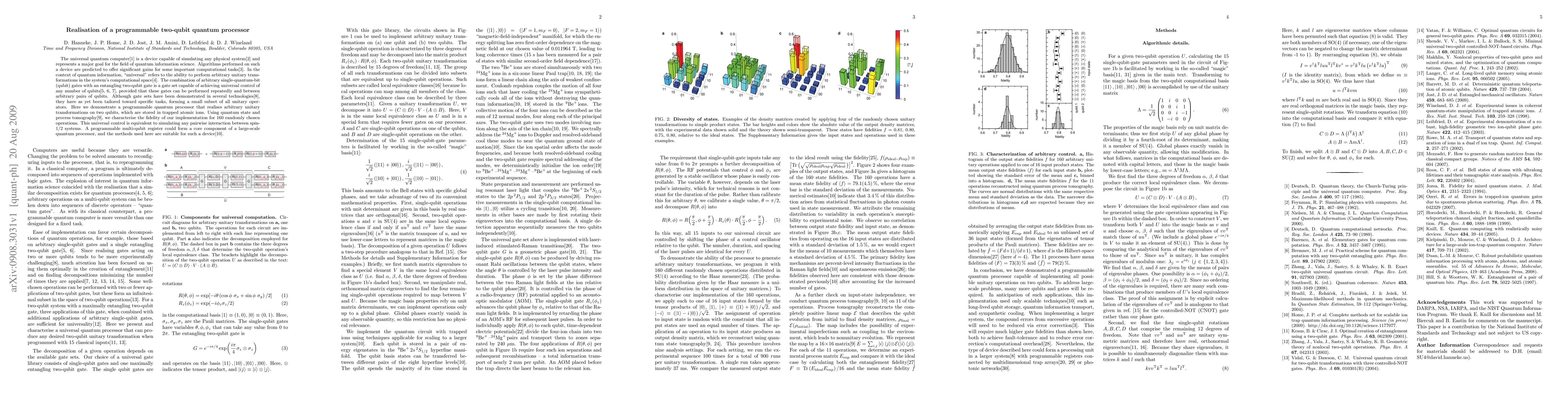 This paper presents a programmable two-qubit quantum processor capable of performing arbitrary unitary transformations on trapped atomic ions, demonstrating universal quantum control. The fidelity of the processor was assessed through quantum state and process tomography for 160 randomly chosen operations.