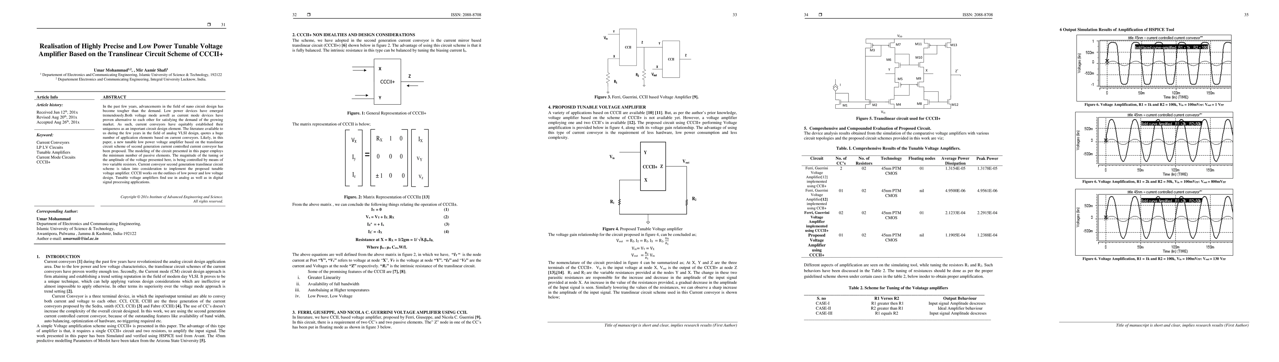 This paper proposes a highly precise, low power tunable voltage amplifier based on the translinear circuit scheme of the second-generation current controlled current conveyor (CCCII+). The design employs minimal passive elements and uses two variable resistors to control the amplifier's tuning, making it suitable for both analog and digital signal processing applications.