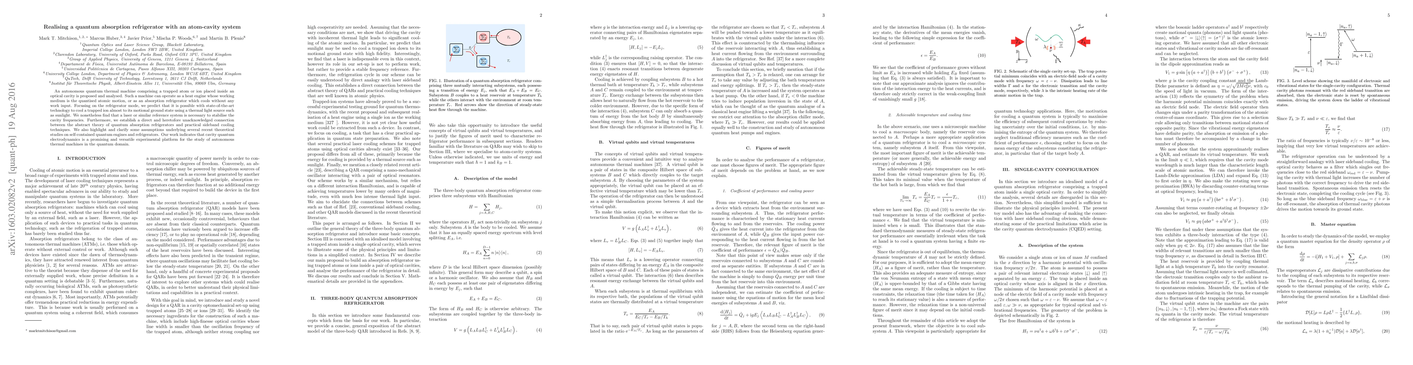This paper proposes a quantum absorption refrigerator utilizing an atom-cavity system, which can cool a trapped ion to near its ground state using thermal light. It also establishes a link between theoretical quantum absorption refrigerators and practical sideband cooling techniques, suggesting cavity quantum electrodynamics as a promising platform for quantum thermal machines.