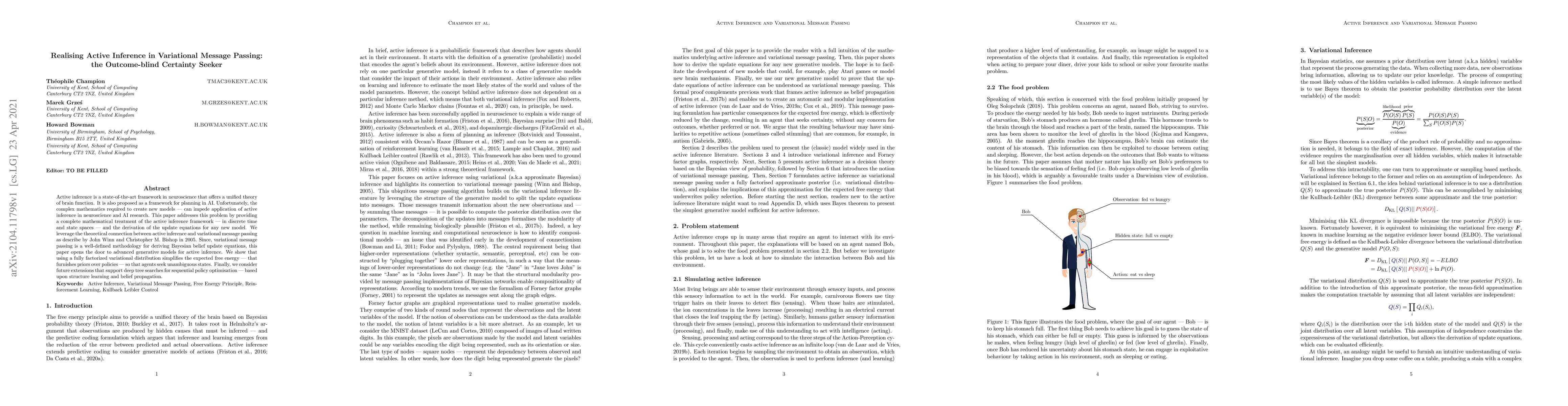This paper simplifies the complex mathematics of active inference by linking it to variational message passing, enabling the derivation of Bayesian belief update equations. This approach facilitates the development of advanced generative models and supports deep tree searches for sequential policy optimization.